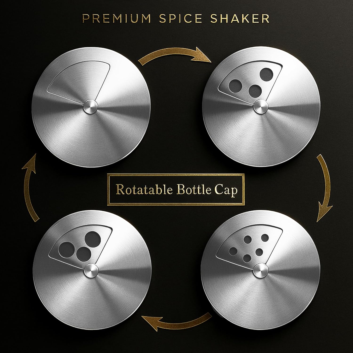 4-Piece Premium Stainless Steel Salt and Pepper Shakers Set – Adjustable Pour Holes Spice Dispenser for Salt, Sugar, Cinnamon, and Pepper – Stylish Kitchen Seasoning and Spice Shaker Set