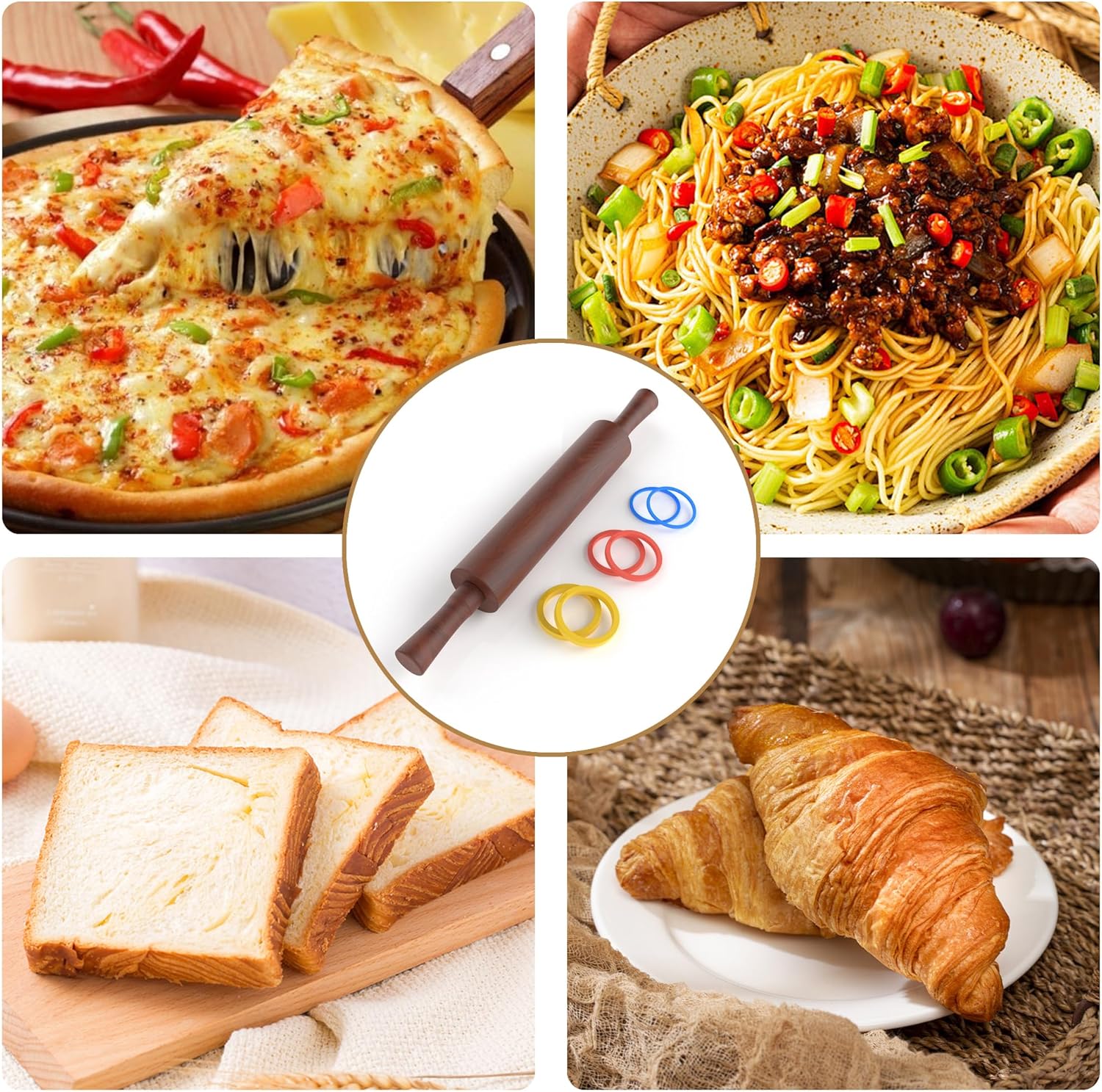 - 🍕Vibrant Rings: Included are 3 sets multi-color thickness rings that can be used as spacers or guides for achieving desired dough thickness.