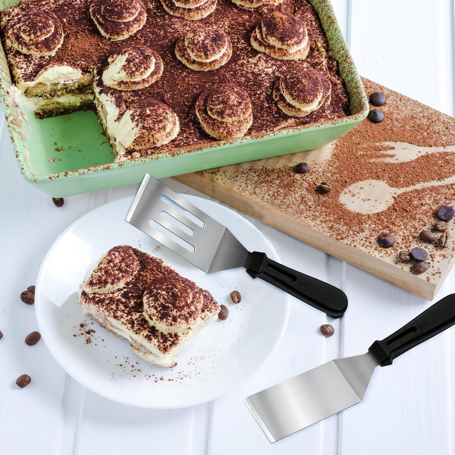 - Multiple Use Serving Spatula: This small spatula easy to flip food such as crepes, pie, beef patties, eggs, biscuits, burgers, brownies, etc., and also convenient to cut lasagna, pizza, brownies, etc., blade sharp. You can enjoy cooking and make delicious food for your family or friends.