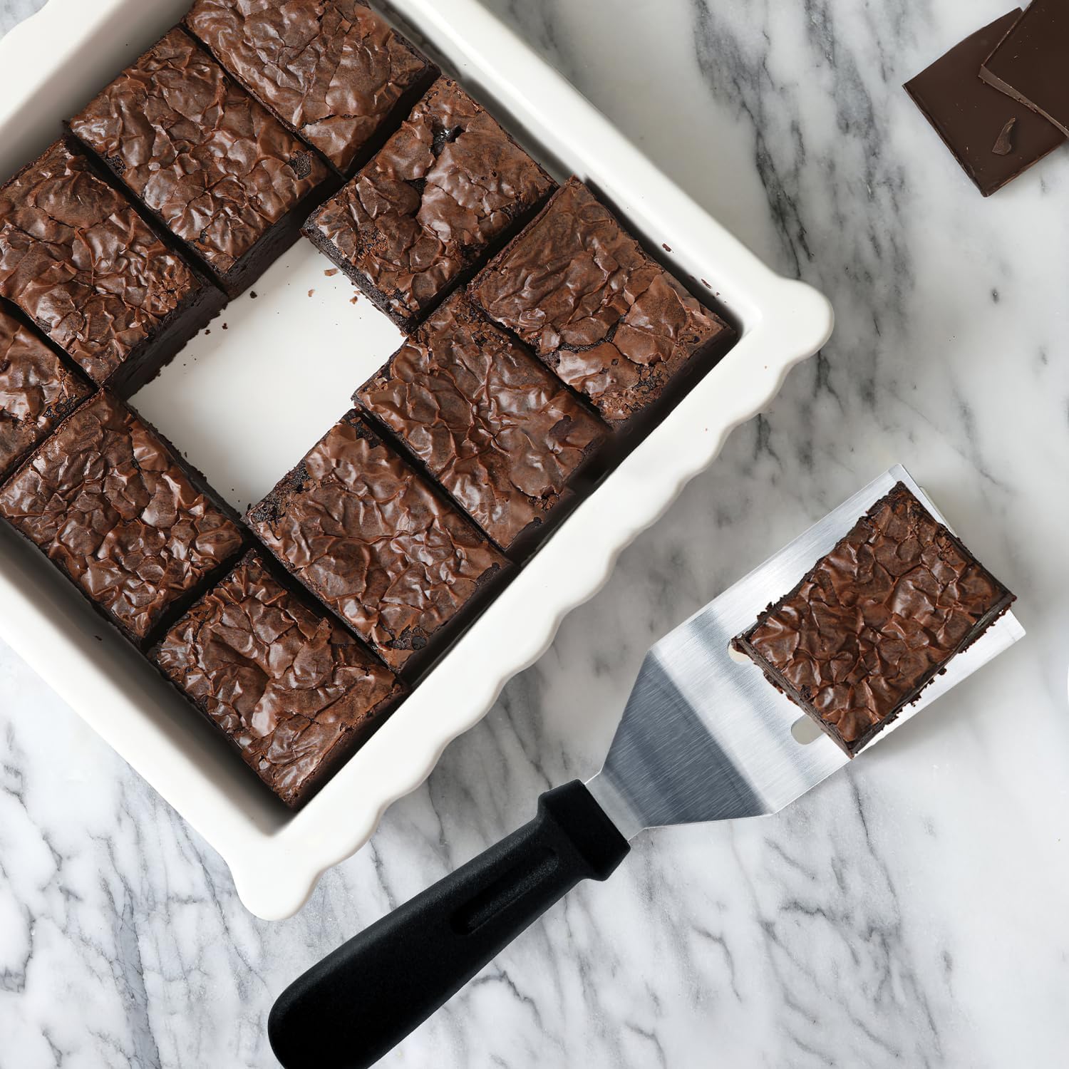 - Professional Metal Spatula: This package includes 2 metal spatulas, 1 slotted spatula 9.8 x 2.35 inches and 1 solid spatula 9.8 x 2.75 inches. These small spatulas are such a handy size. They are perfect for cutting and serving brownies, quiche, cornbread, etc. Also it’s perfect for serving anything our of a pyrex dish.