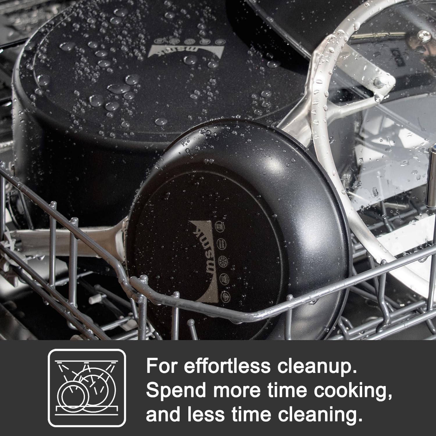 - LONG-LASTING & EASY TO CLEAN: After your culinary masterpiece is complete, a gentle wipe-down followed by a rinse with water will do the trick. For added convenience, you can also opt for a quick and easy dishwasher cleanup cooking pans. (Keep in mind that hand washing is a recommended option if you wish to prolong the lifes of the skillet pan's coating.)
