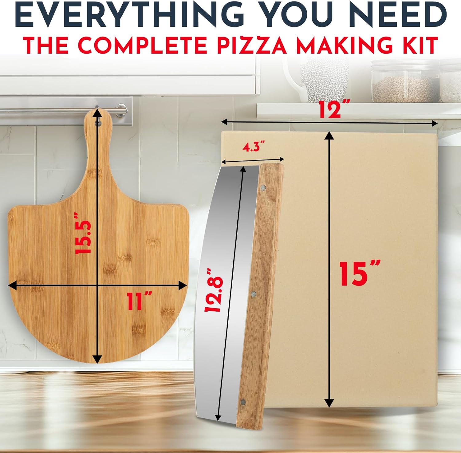 Pizza Stone for Oven Set - 15 x 12 inch Stone for Grill - 3PCS PizzaMaking Accessories - Large Pizza Oven Stones - Baking Stones for Bread and Pizzas