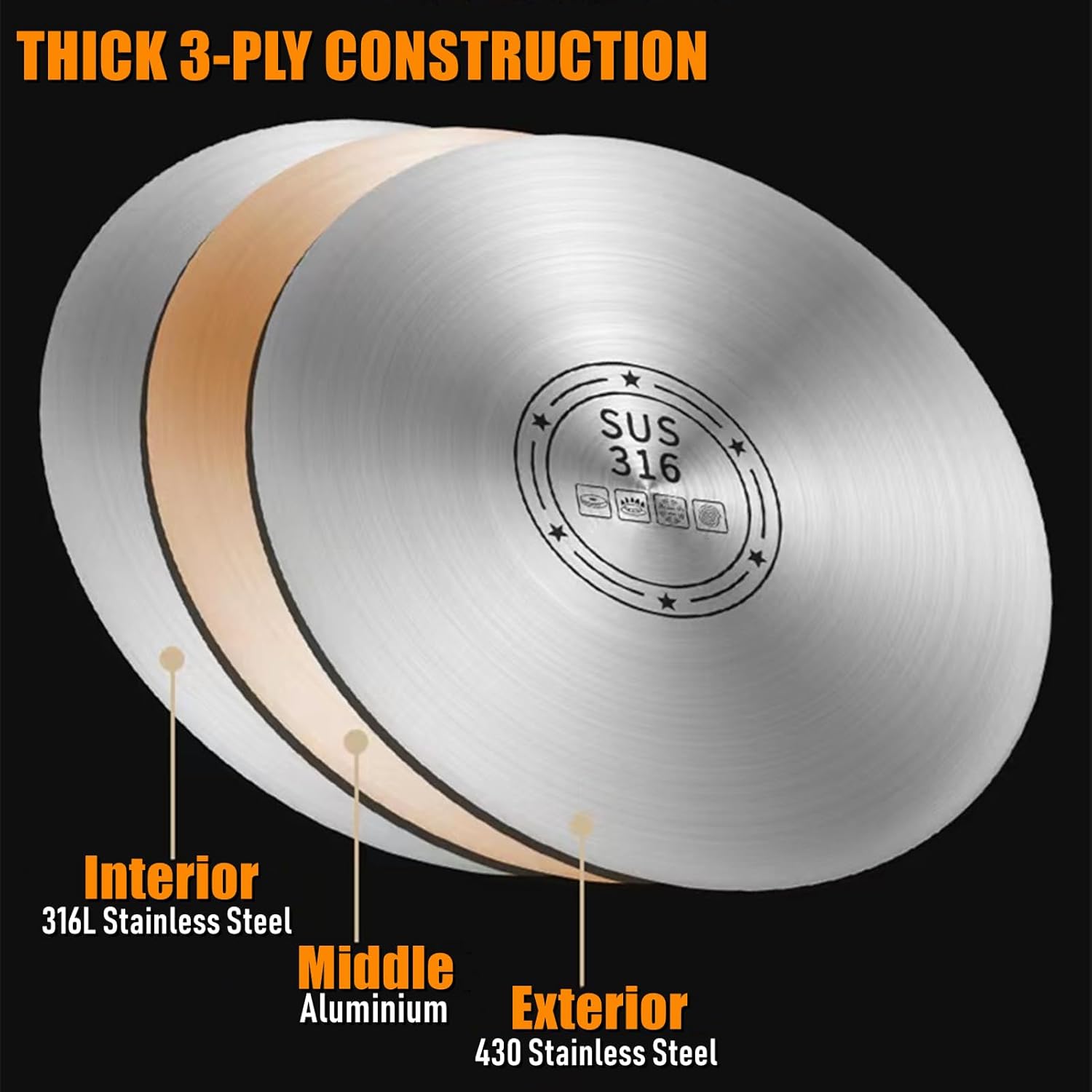 - Our metal pot consists of durable stainless steel encapsulating an aluminum core for even heating throughout. Strong enough for lifelong use.