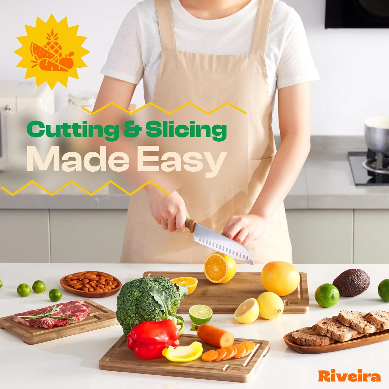 Riveira Brown Bamboo Wood Cutting Board – Gourmet Bamboo Grandeur: 24 x 18 Wooden Cutting Board – Wooden Cutting Boards For Kitchen Decorative – Innovative Juice Grooves Wooden Chopping Board