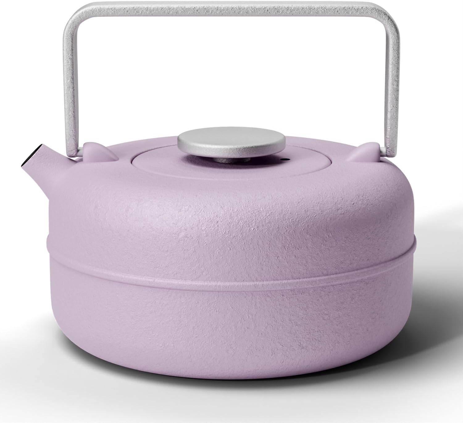 Toptier Teapot with Removable Infuser, Cast Iron Tea Kettle Stovetop Safe, Solid Geometry Cylinder Design Tea Pot Coated with Enameled Interior for 27 Ounce (800 ml), Purple