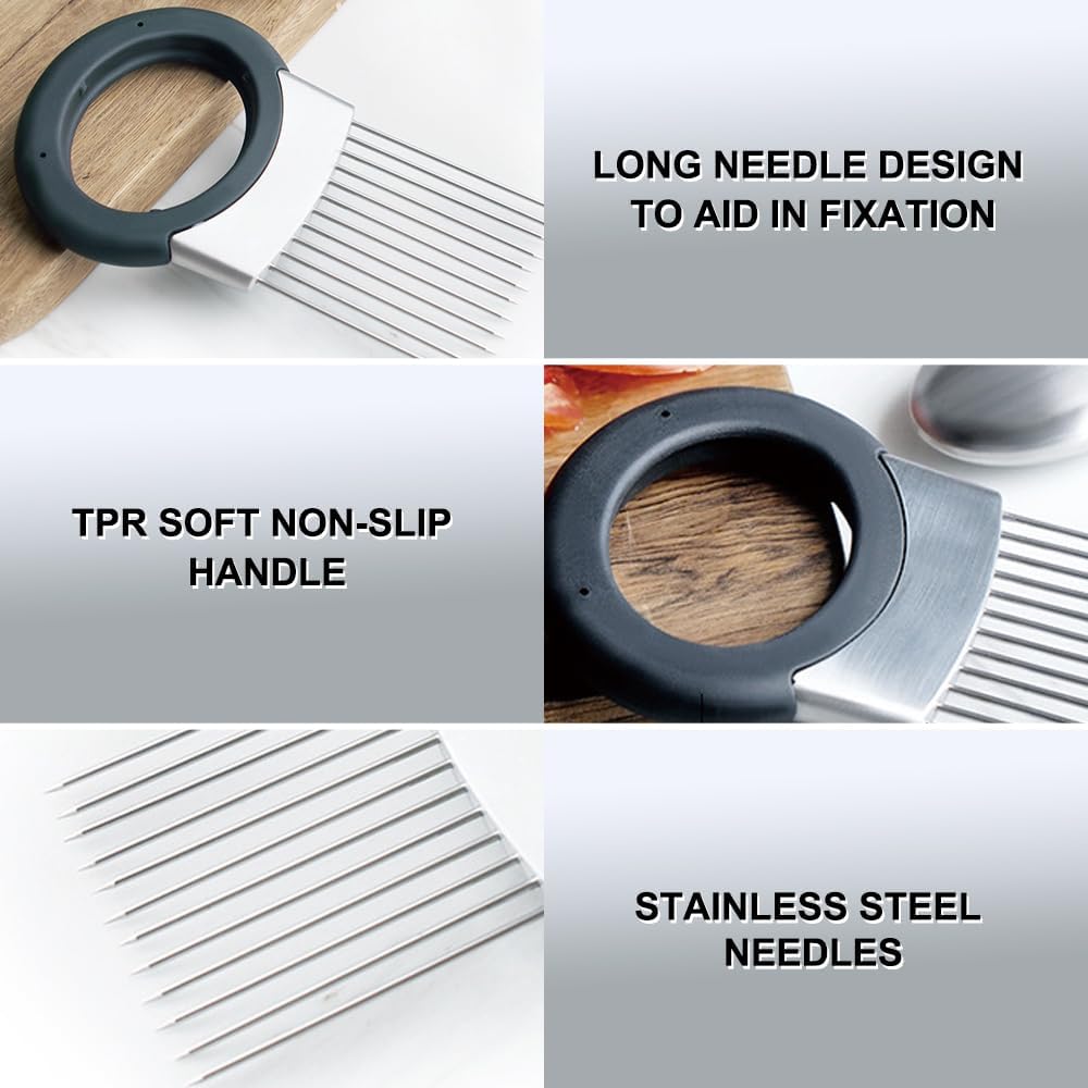 - 【Safe Slicing】Through its unique design, the onion fork clamp can firmly hold the onion, so that when slicing or dicing, the onion will not slide or roll, which improves the safety of the slicing process
