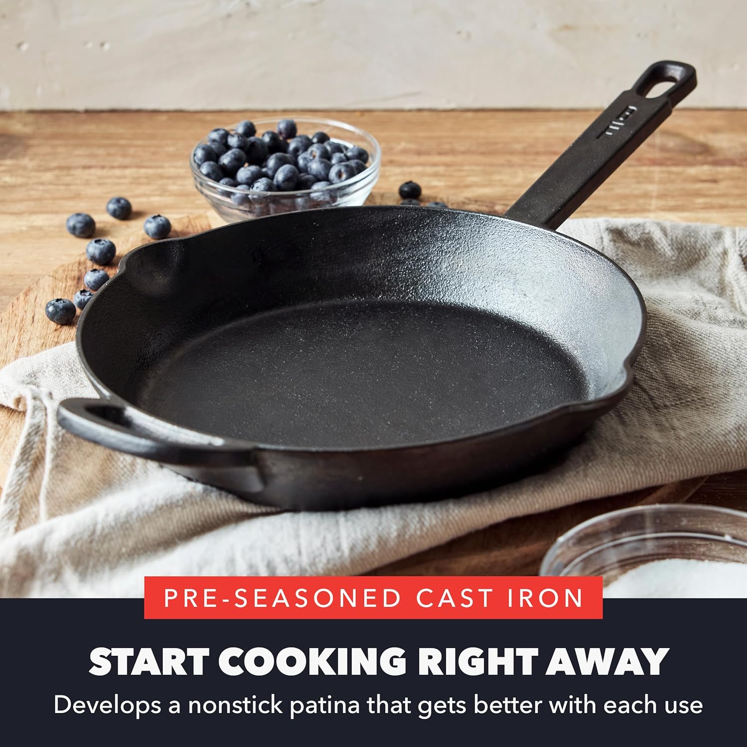 GreenPan x Bobby Flay 10” Cast Iron Pre-Seasoned Skillet with Helper Handle, Professional Grade Heavy Duty, Induction, Pour Spouts, Versatile Stovetop, Oven, BBQ Grill Fire, Indoor/Outdoor Use, Black