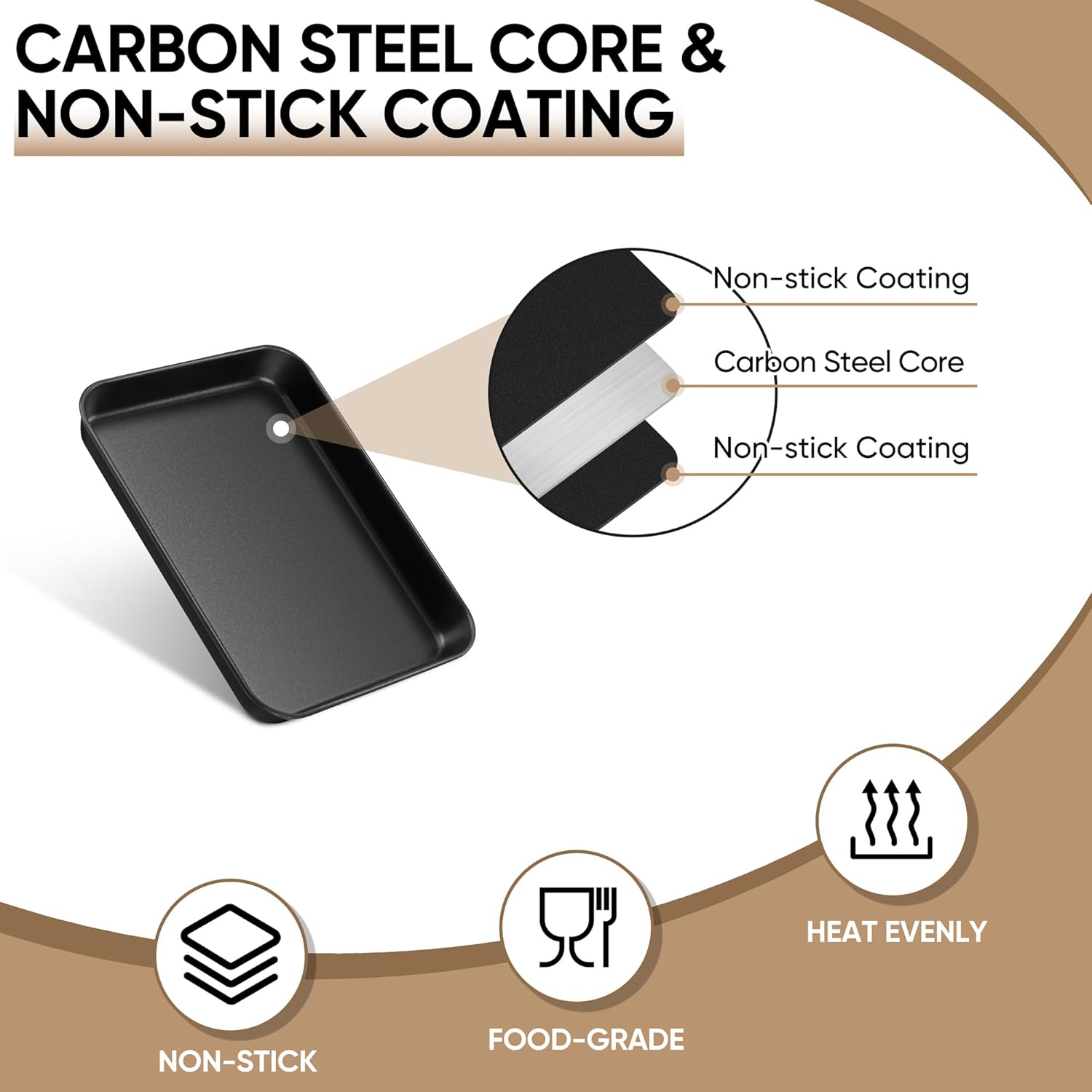 E-far Baking Sheet Set of 2, 9" x 7" x 1" Small Cookie Sheet Pan for Baking, Nonstick Carbon Steel Baking Trays for Toaster Oven, Heat-Resistant & Easy Clean, Black