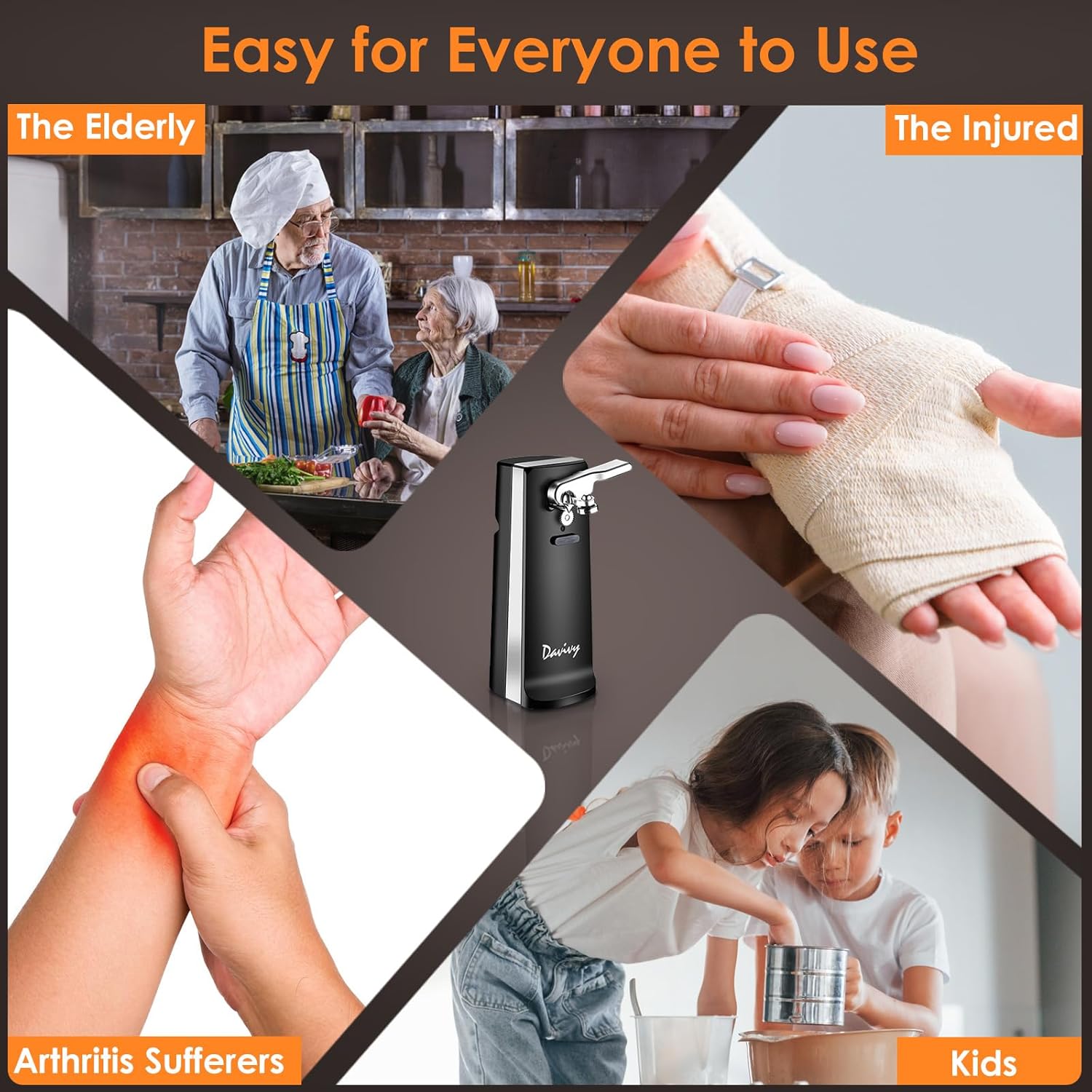 - 【Kitchen Gifts for Arthritis and Seniors】Davivy Stainless Steel Tall Automatic Can Opener is perfect for people with arthritis or hand pain,no manual labor or strenuous squeezing required.