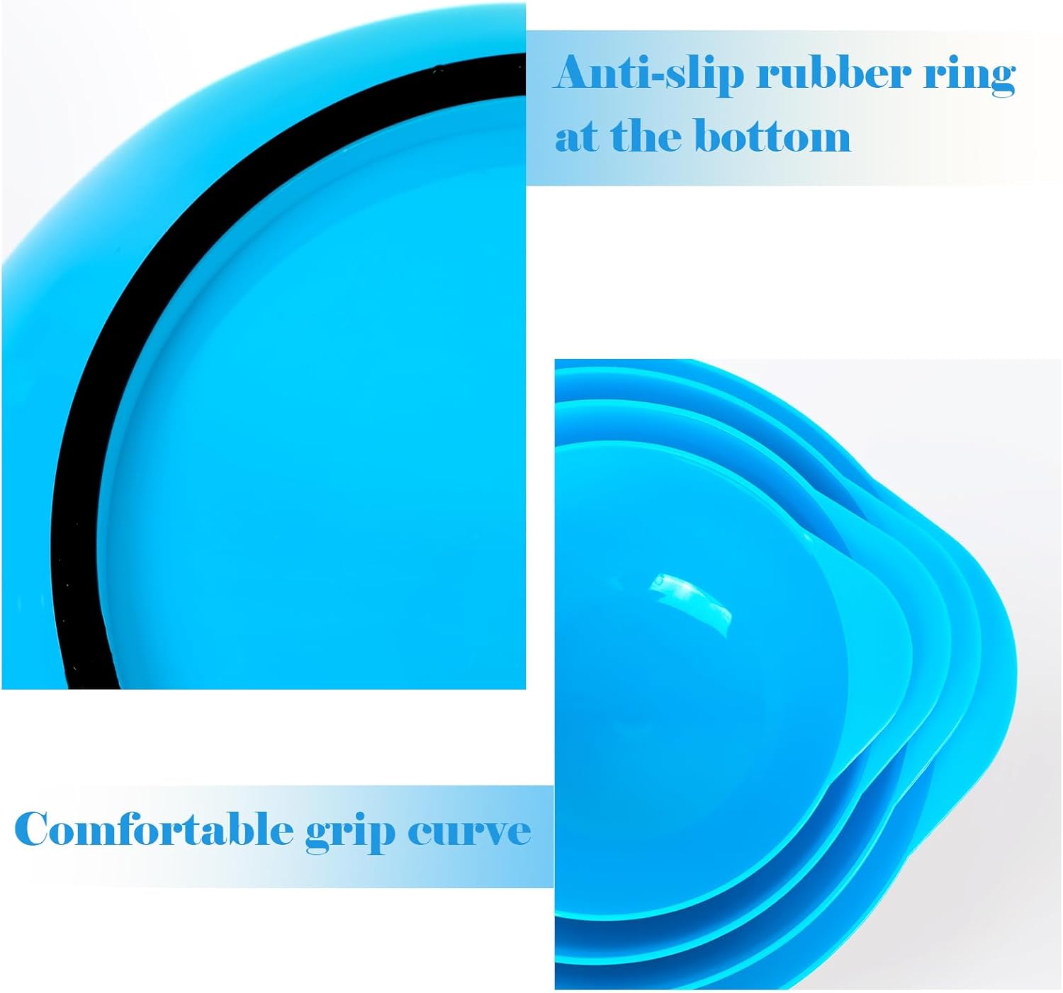 - 【Anti-Slip & Practical】There is non-slip rubber at the bottom of the plastic bowl, it can prevent slipping efficiently during the mixing. And compared with traditional mixing bowls, they are resistant to impact and lightweight enough, you will not worry about the smash, rust, or too heavy to handle at all. Versatile in use, not only does it can used as stacking mixing bowls, double as convenient containers as fruit bowl, salad bowl, batter bowl, cereal bowl or even as popcorn bowl.