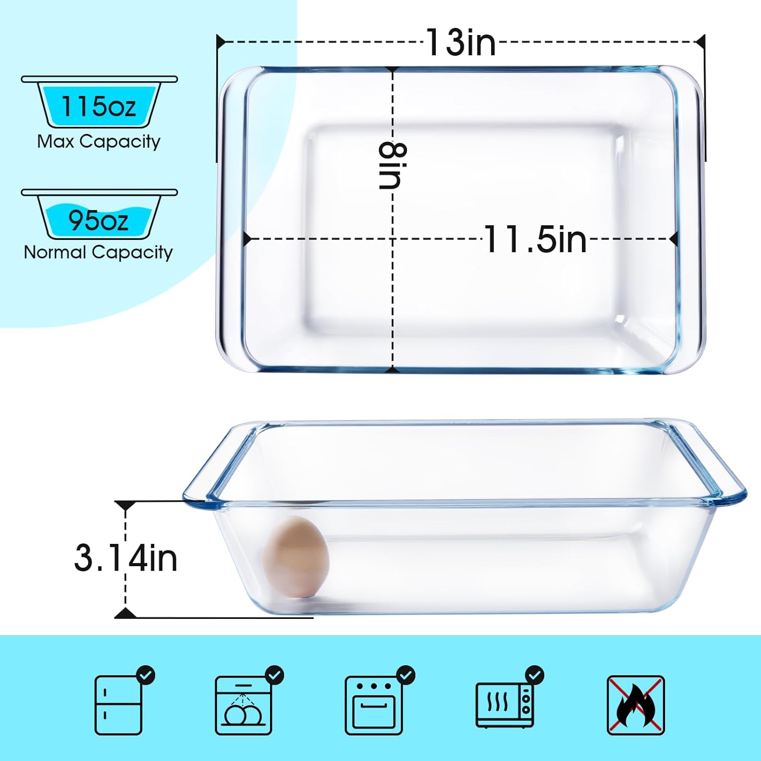 - 【25% Deeper Design】 Measuring 11.5x8x3.14 inches(I.D. size, 13in O.D. long side) with a 3.7 quart capacity,the straight edge design of this baking pan allows it to hold a larger capacity, and the deep design makes it easy to bake layered dishes or hearty meals, avoiding spills during the baking process to meet all your baking needs. Perfect for cooking lasagna, casseroles, chicken, roast, bread, pasta, beef, and more