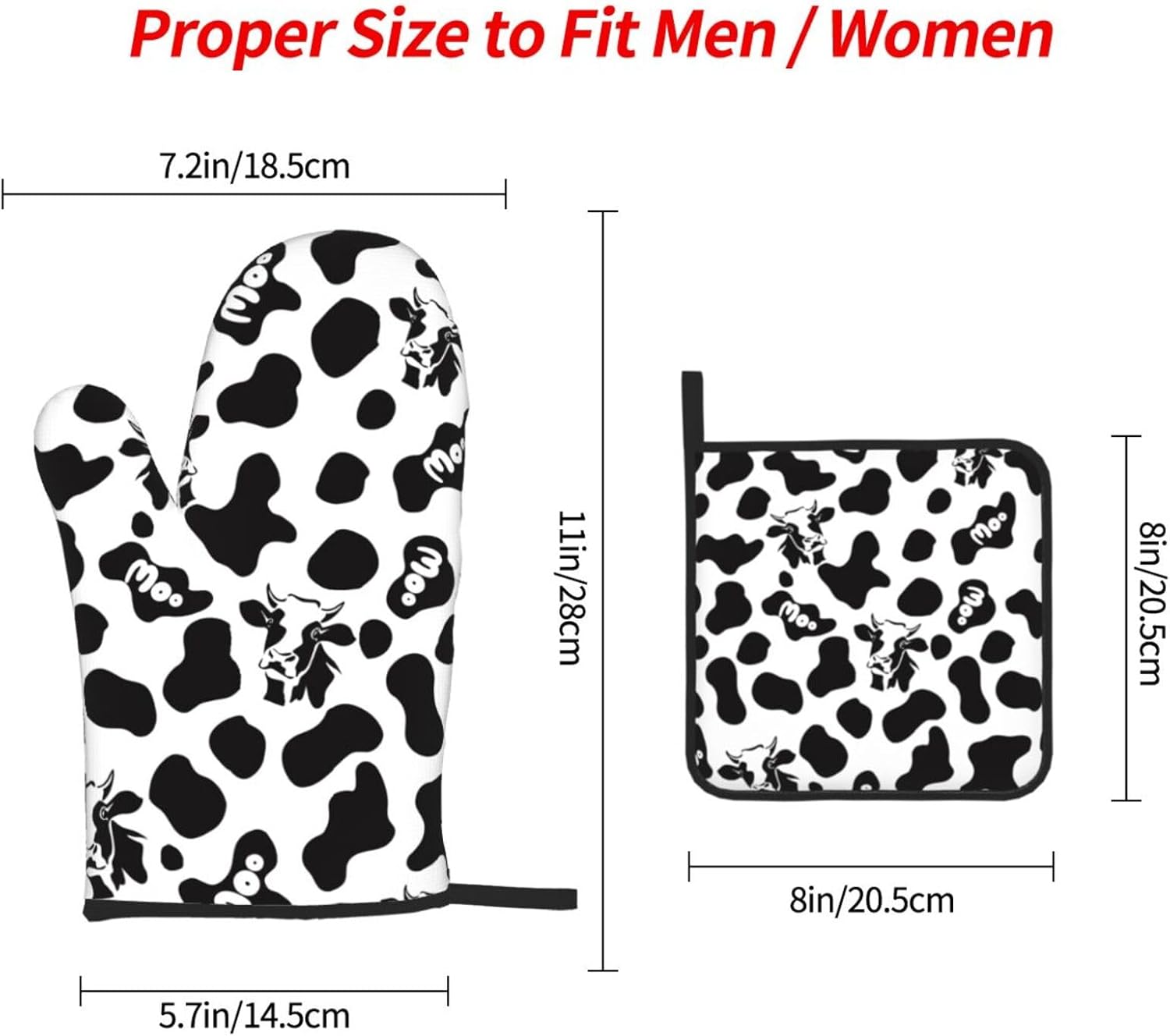 Cow Print Oven Mitts and Pot Holders Sets Heat Resistant for Kitchen BBQ Microwave Baking Grilling Cooks Set of 3 Black White Kitchen Oven Glove