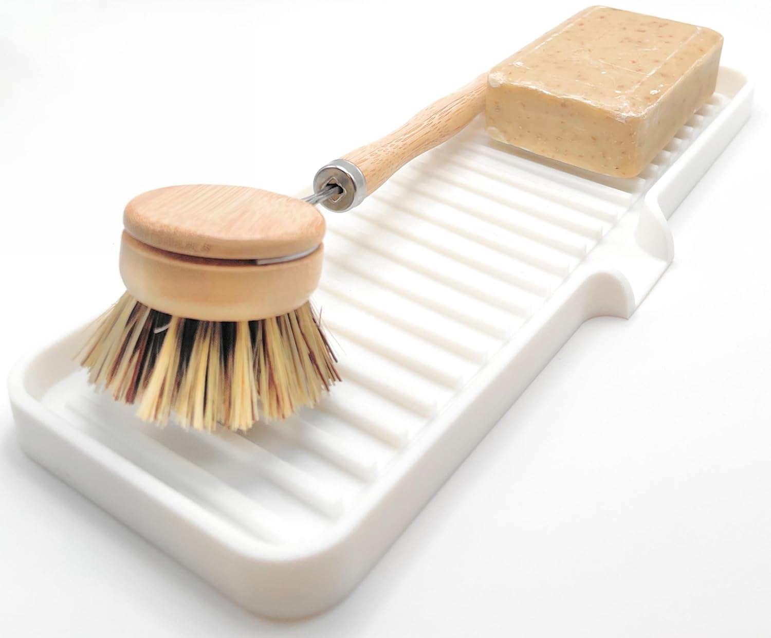 - A More Hygienic Home | A dedicated space for your dishwashing supplies, bathroom sink items, shower niche/shelf items. Tray and drain chute are slightly sloped to help funnel excess water away.Thick, sturdy base stays in place without suction while raised lines promote air flow, so items dry faster and are less prone to developing nasty odors.