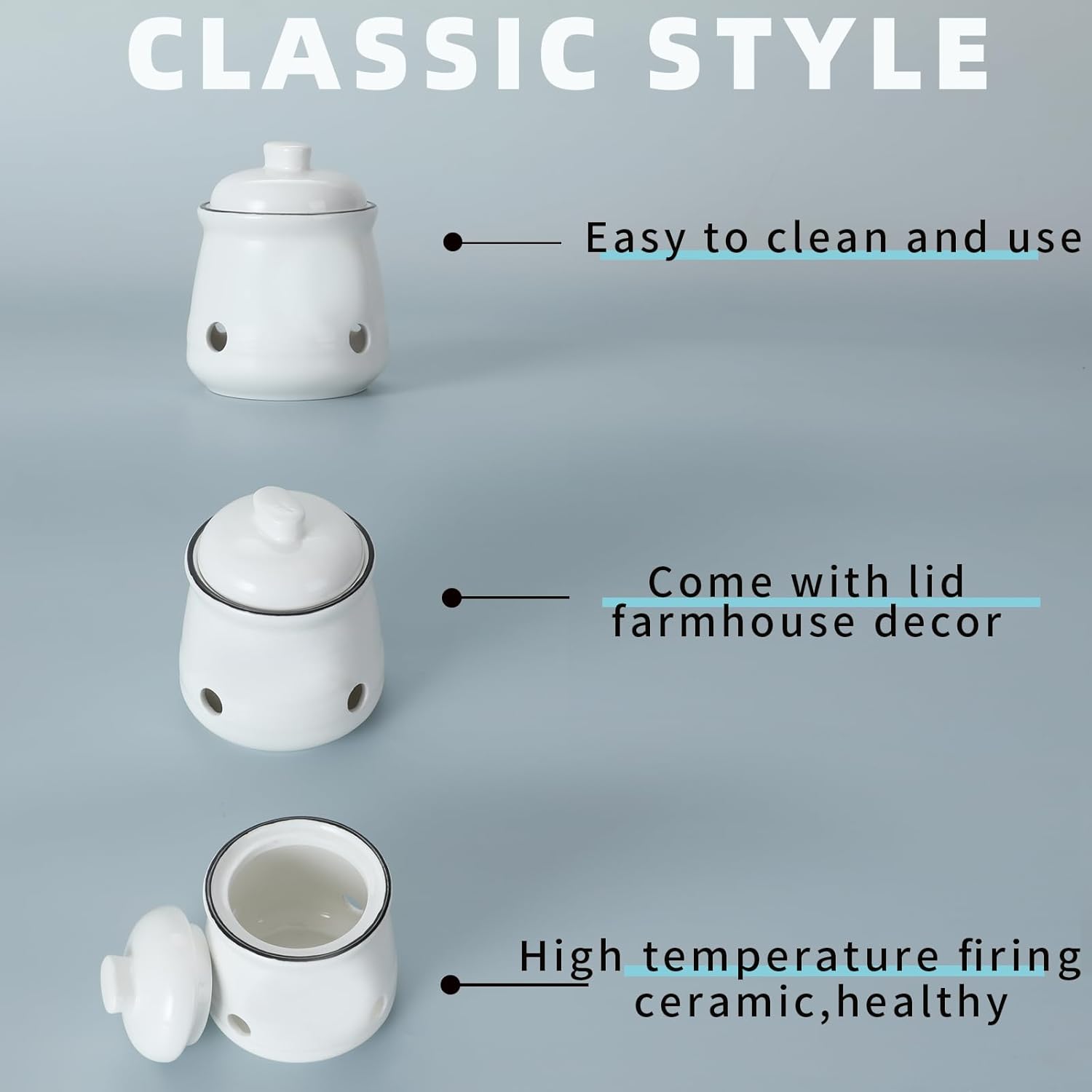 - ELEGANT DESIGN: Our garlic keeper with lid is a stylish addition to any kitchen or dining table. Its ceramic bowls and lid combination create a simple, yet elegant design that complements any decor