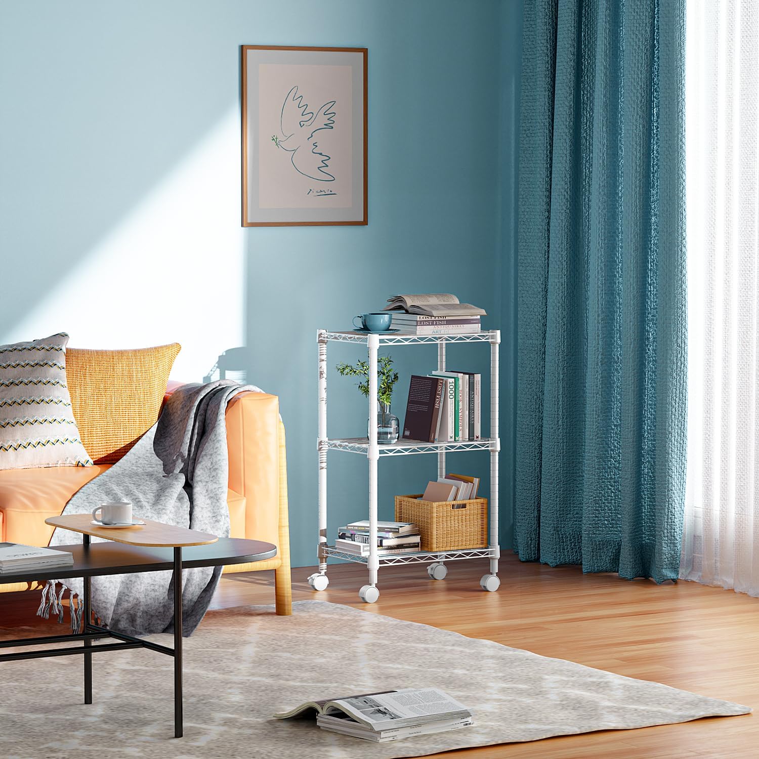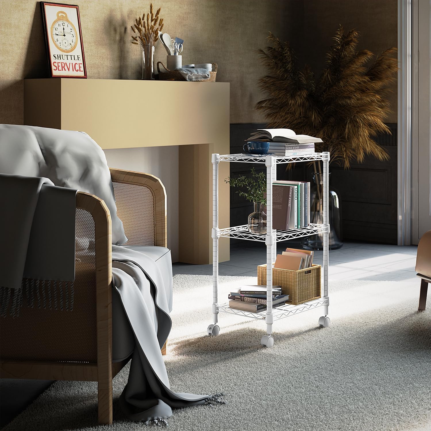 3 Tier Shelf Metal Storage Shelves Wire Rack Closet Organizers with Wheel for Garage Kitchen Bathroom Laundry White 11.8" D x 17.7" W x 29.8" H