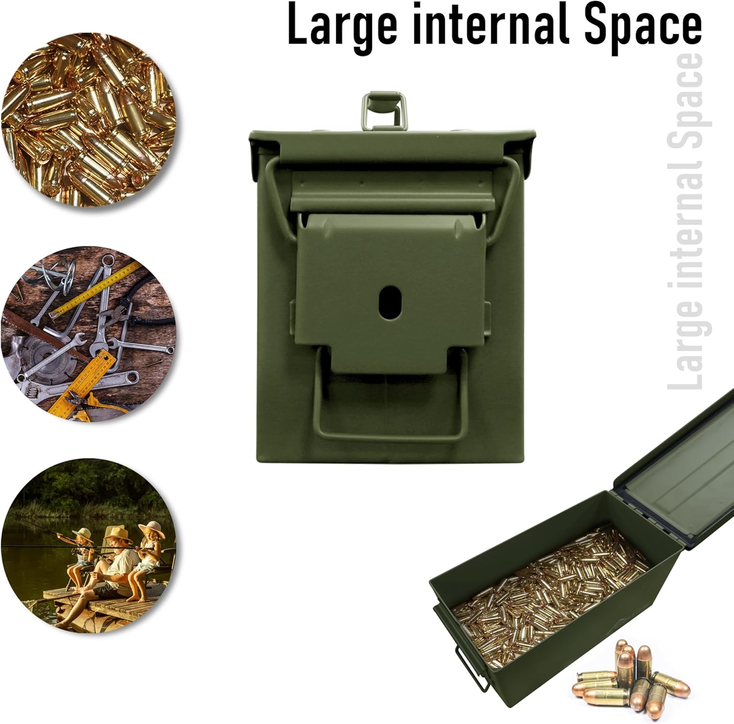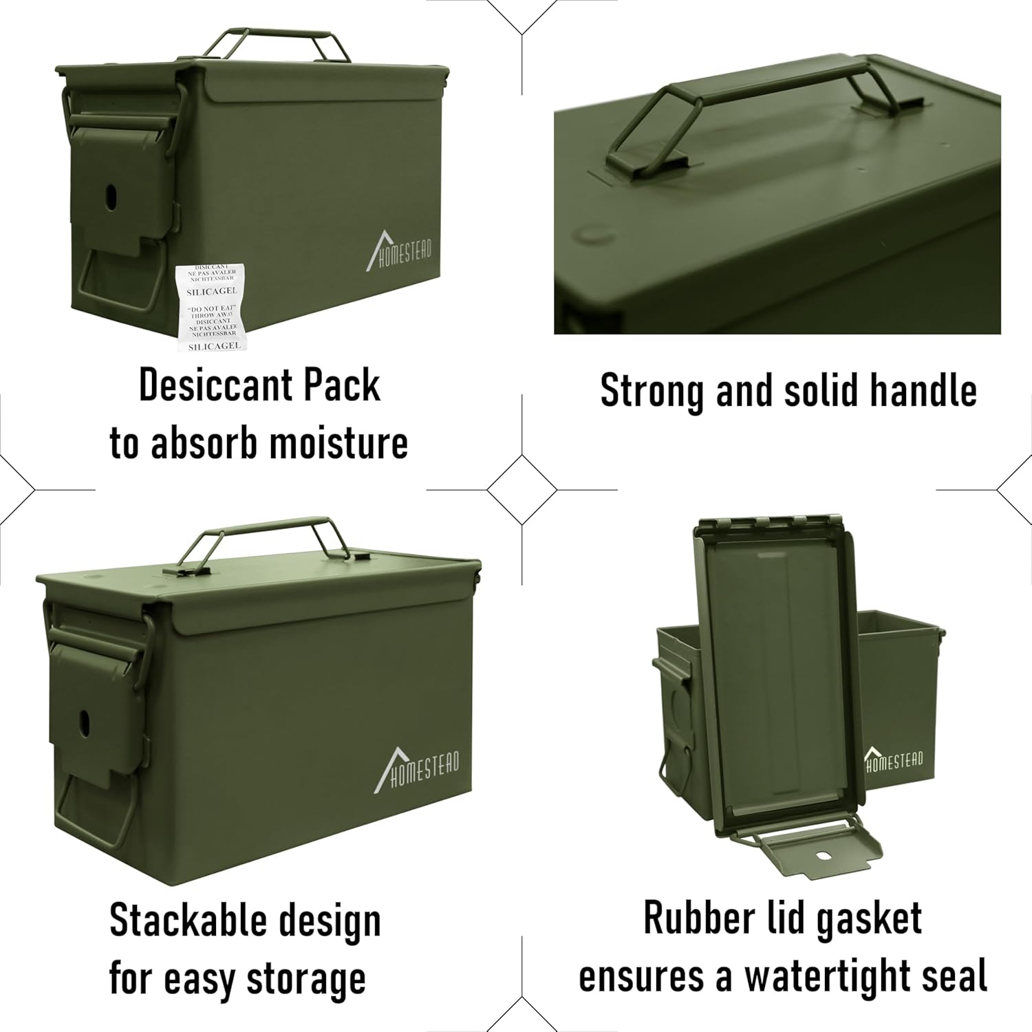 HOMESTEAD 50 Cal Metal Ammo Can – 4 Pack M2A1 Military Steel Ammo Storage Box, Airtight and Water-Resistant Ammunition, Green Color
