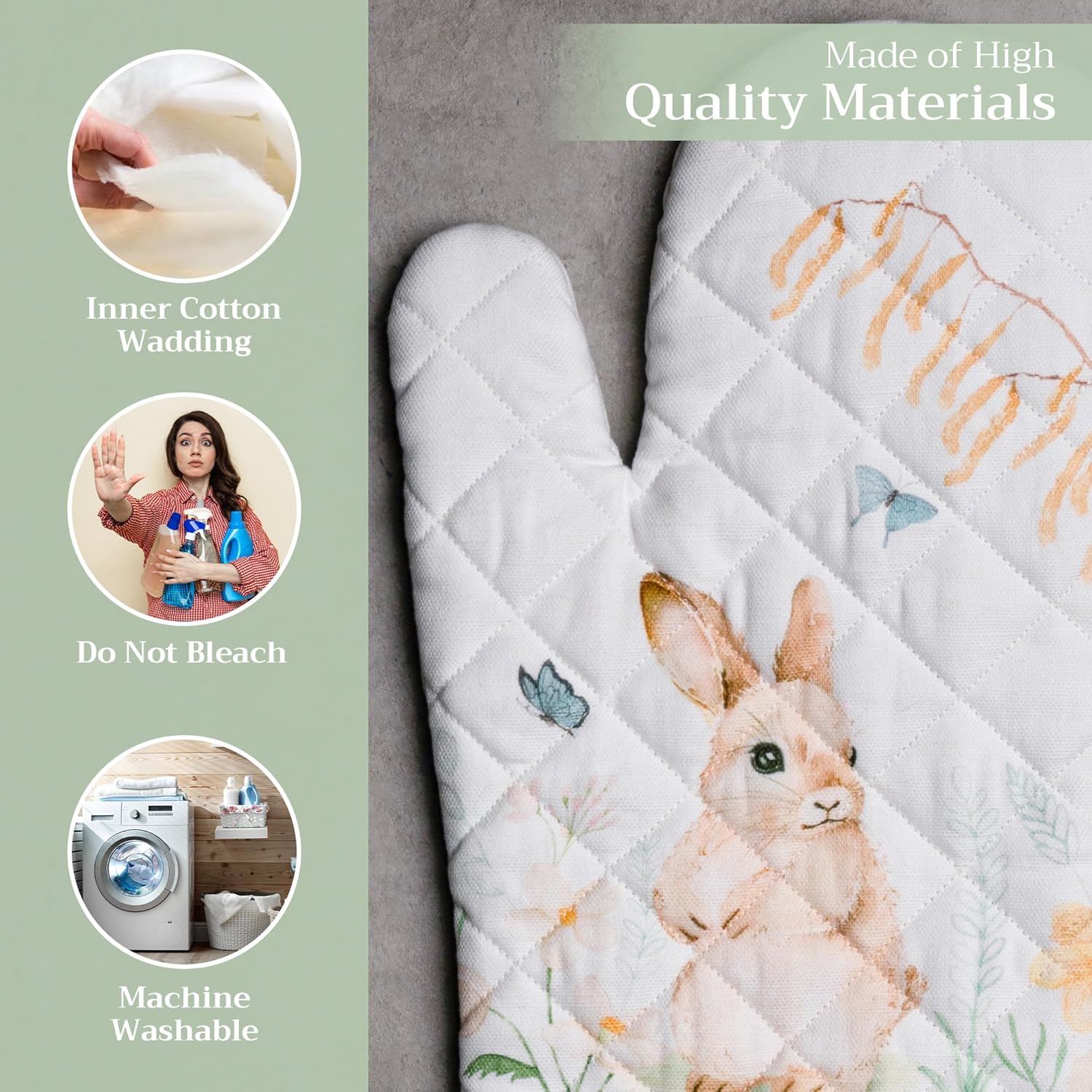 Maison d' Hermine Oven Gloves 100% Cotton Oven Mitt 7" x 13" with Loop Heat Resistant, BBQ, Cooking Gloves, Baking, Grilling, Kitchen, Handling Hot Pans Spring/Summer (Pack of 1, Easter Dew)