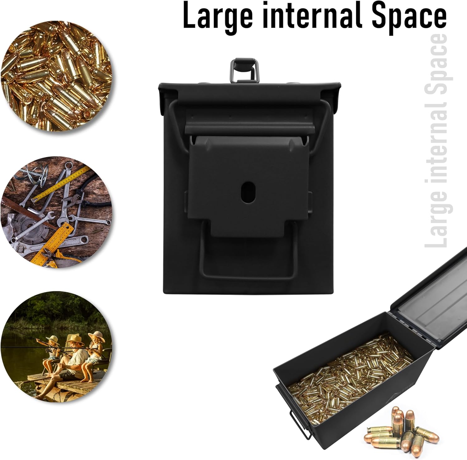 HOMESTEAD 50 Cal Metal Ammo Can – 4 Pack M2A1 Military Steel Ammo Storage Box, Airtight and Water-Resistant Ammunition, Black Color