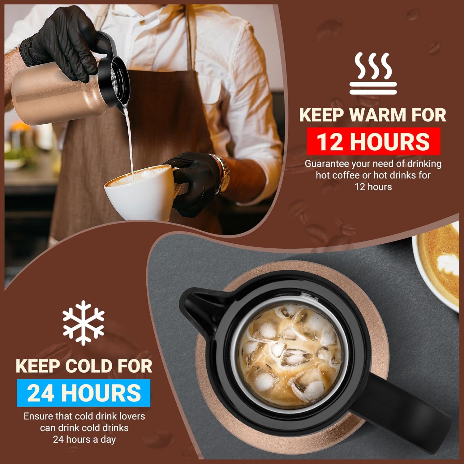 - Double-wall Vacuum Insulation: Perfect for hot water,hot cocoa, milk, or coffee, this double-wall vacuum insulated coffee carafe features advanced insulation to keep your drinks at the ideal temperature for hours