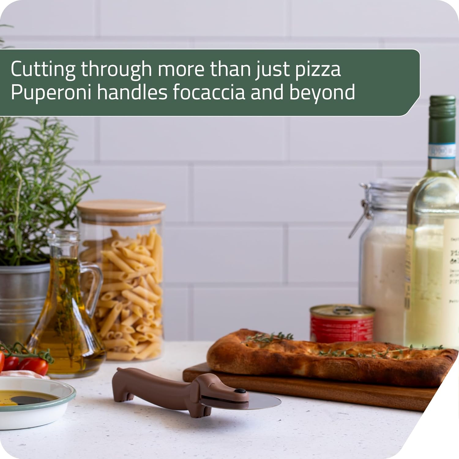 Peleg Design Puperoni Cute Pizza Cutter Wheel – Dog-Shaped Plastic Pizza Cutter Wheel with Stainless Steel Blade & Durable Plastic Handle, Fun Kitchen Gadget