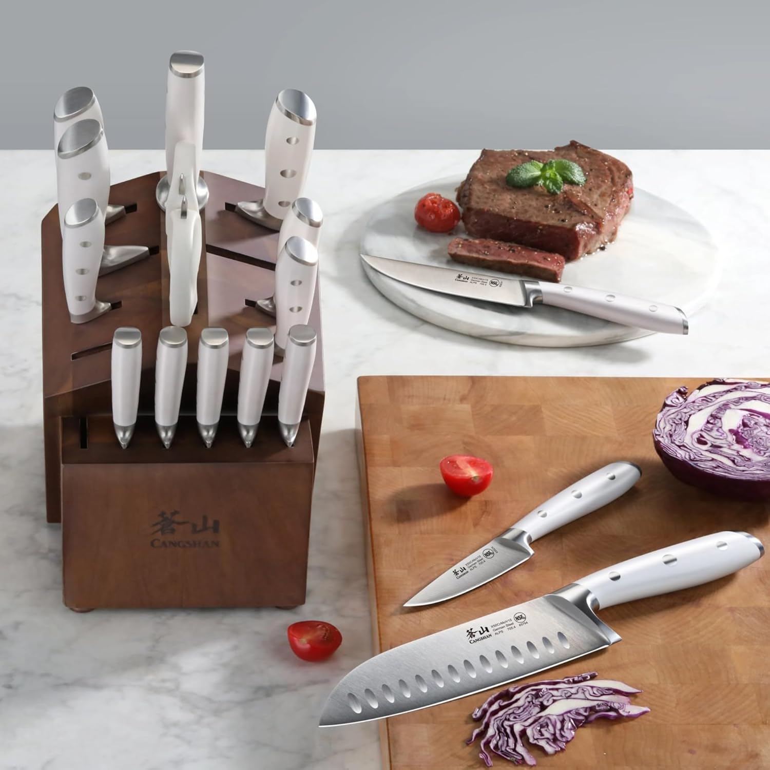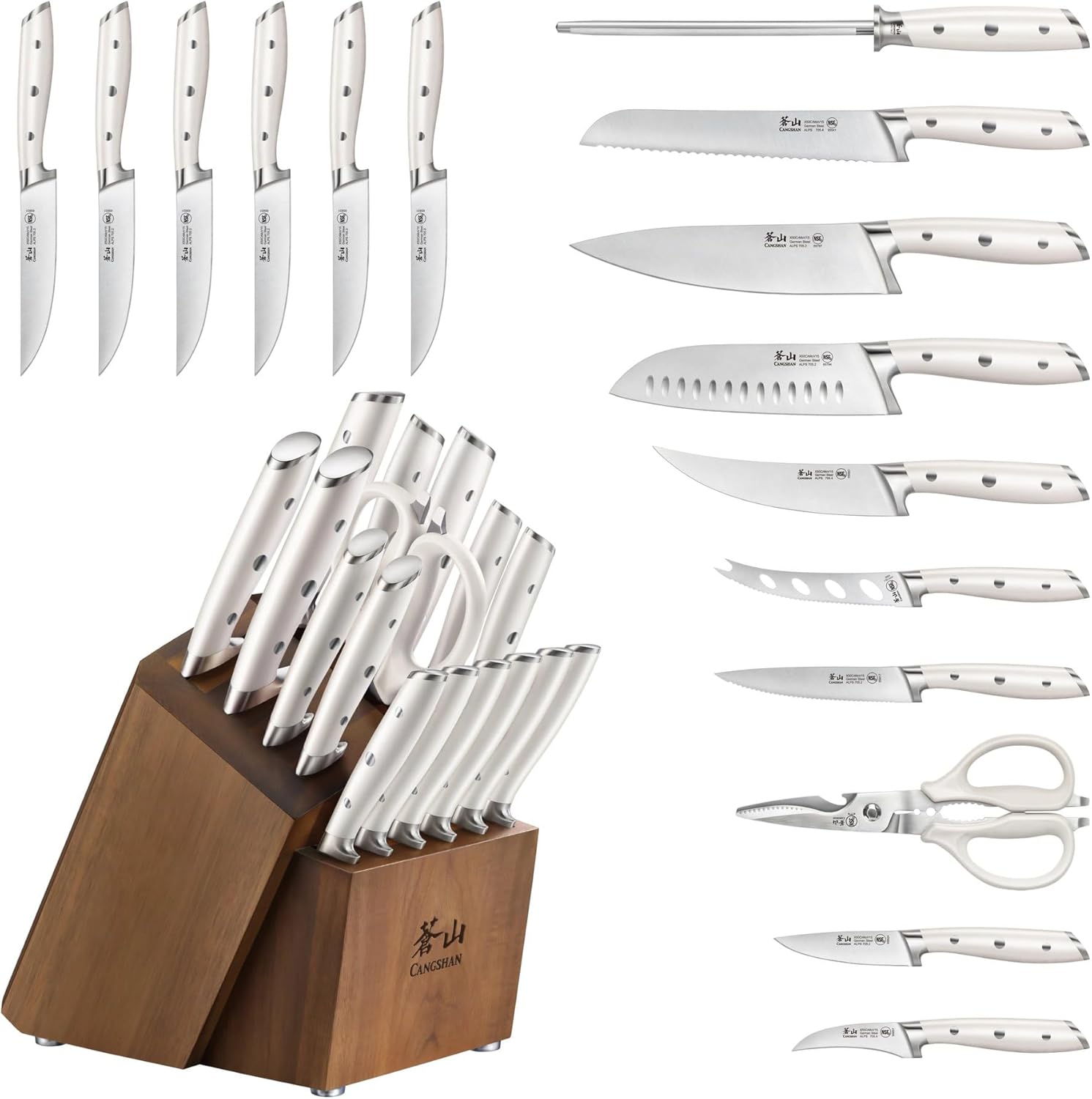 Cangshan Alps Series German Steel Forged 17-Piece Knife Block Set, Acacia (White)