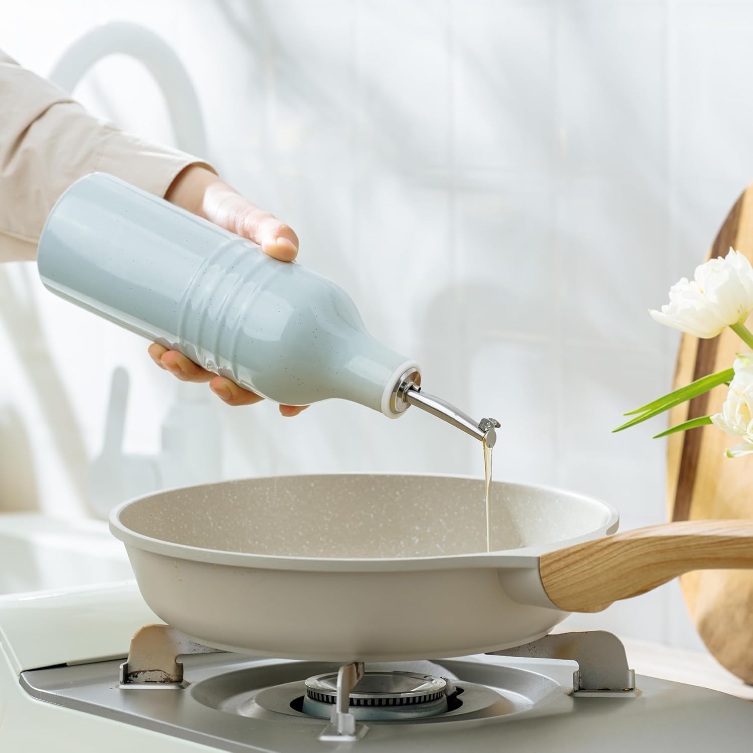 - KEEPS OIL FRESH - Exposure to light can cause olive oil to go rancid. This opaque olive oil dispenser bottle ceramic protects your olive oil or vinegar from harmful UV rays, keeping it fresh longer