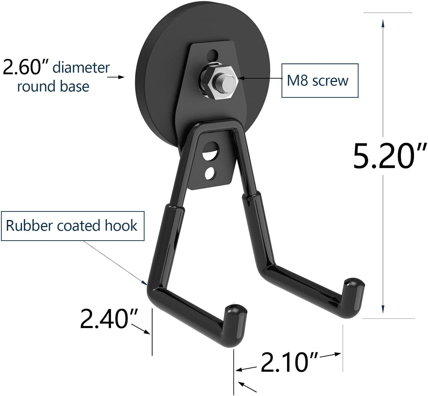 - 🧲[Multiple Use Hooks]: This magnet hook includes a robust 2.60-inch magnet base with a threaded bar, nut, spacer, and a PVC coated hook. We put it to the test, and this magnetic hook can securely hold any type of EV charger, one gallons of bottled water, and a variety of garage tools, drills, and toolboxes.