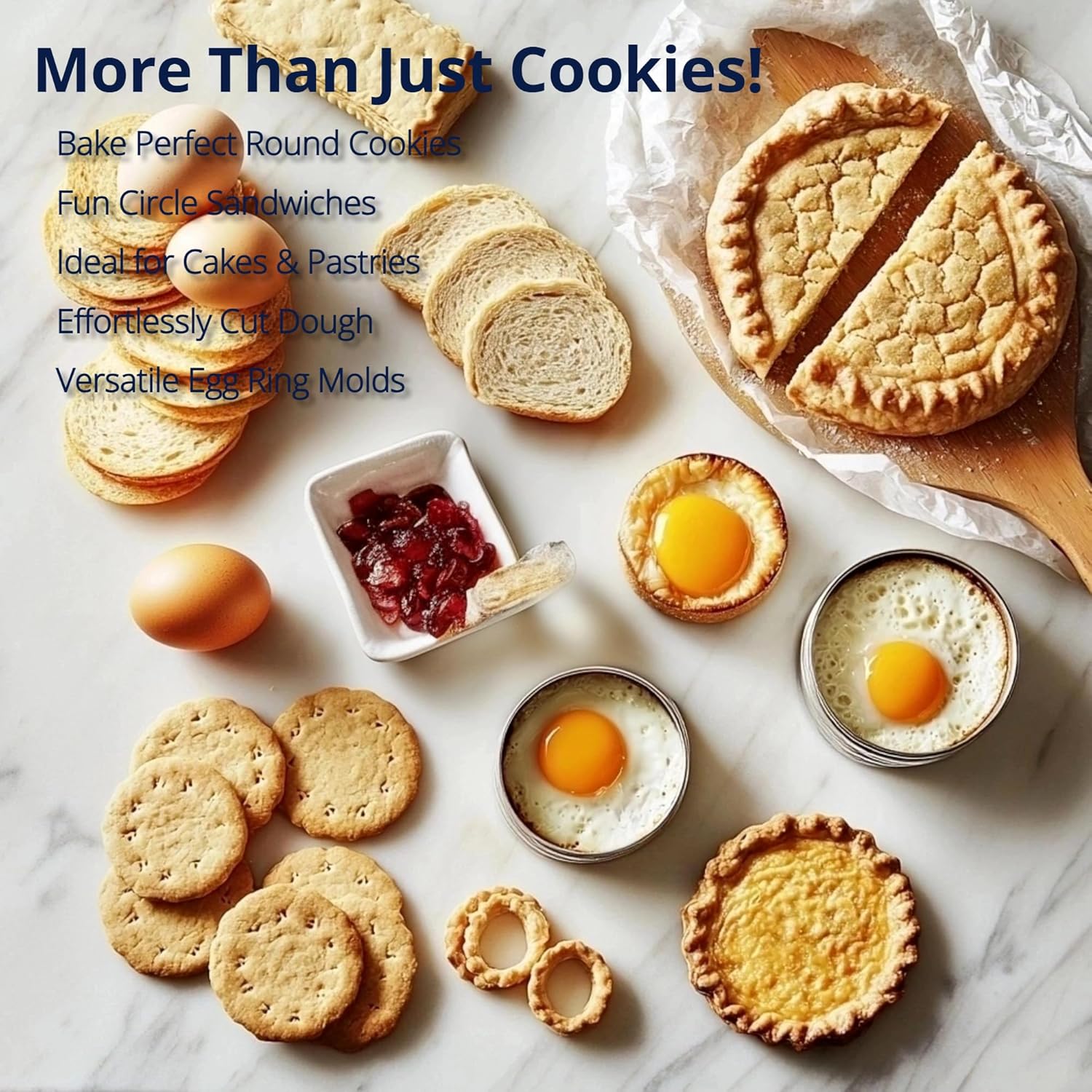 - These cutters are not just for cookies. Use them to cut biscuits, sandwiches, cake, donut, dough, and even pie crusts. The round cake cutter and circle sandwich cutter functionalities add versatility to your baking toolkit. Keywords: round cookie cutter, round cake cutter, circle sandwich cutter.