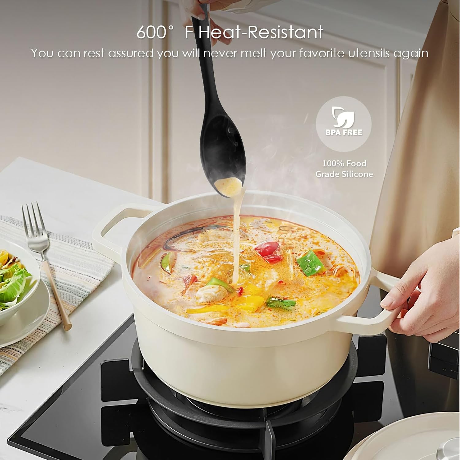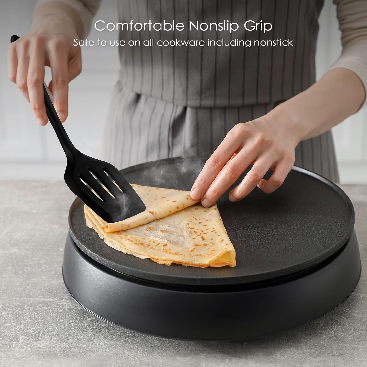 - SMOOTH BLADES - The bendable heads on our silicone kitchen utensils are gentle on cookware, leaving them unmarked and unscratched.