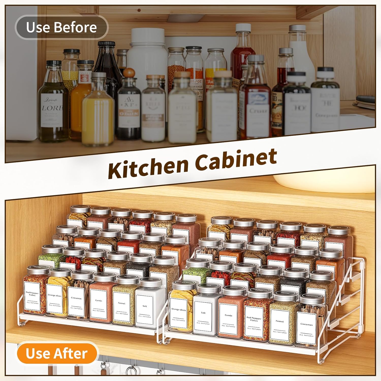 - Metal Material Strong & Sturdy: Seasoning rack is made of high-quality metal, the each tier has a sheet metal base design. making the spice bottles more stable to place and less likely to tip over. With cabinet spice rack, you can nicely organized your spice bottles in your cabinet in leveled tiers.