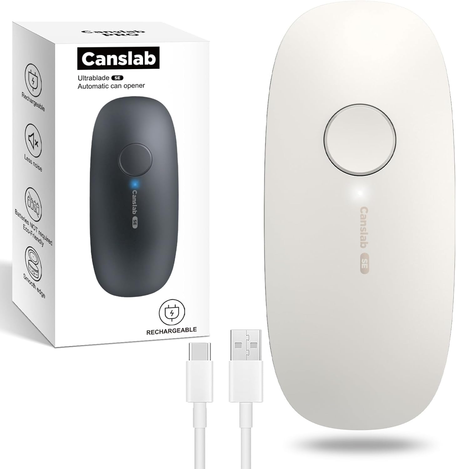 - 【Modern Tech for Easy Can Opening】– Say good bye to the bulky contertop can opener, and say hello to Canslb's smaller and faster electric can opener. Canslab Ultrablade Series brings kitchen can opener into modern times with its powerful motor, easy-to-use design, and stylish appearance. Reduced noise, faster and more steady cutting, rechargeable battery, ultra-fast USB charging, easy one touch operation, magnetic lid lifter, smooth edge, food safe, easy storage are some of the enhanced features built into the sleek white electric can opener.