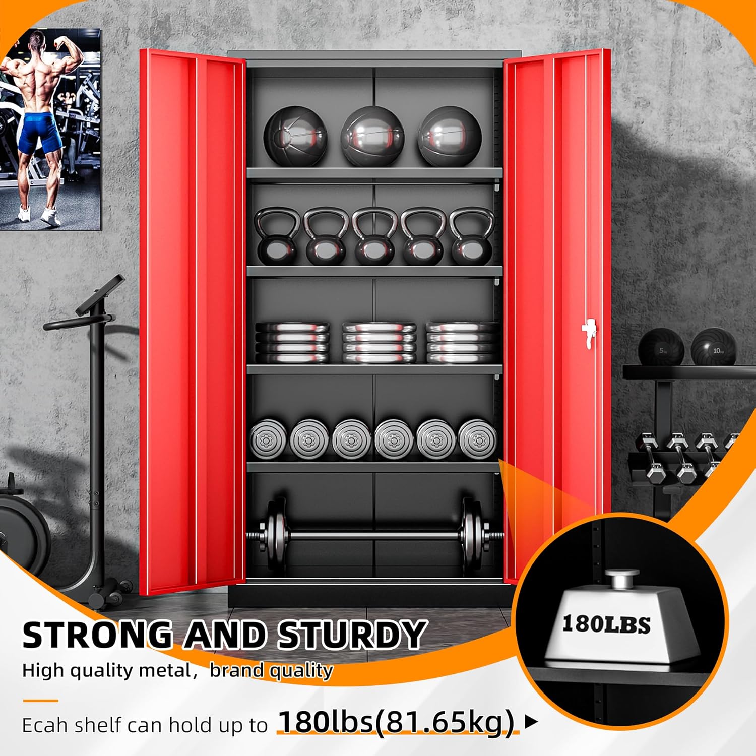INTERGREAT Storage Cabinet, 72” Steel Locking Closet with Doors and 4 Adjustable Shelves, Tool Unit for Home Office, Garage & Tall Lockable File Cabinet, Black Red.