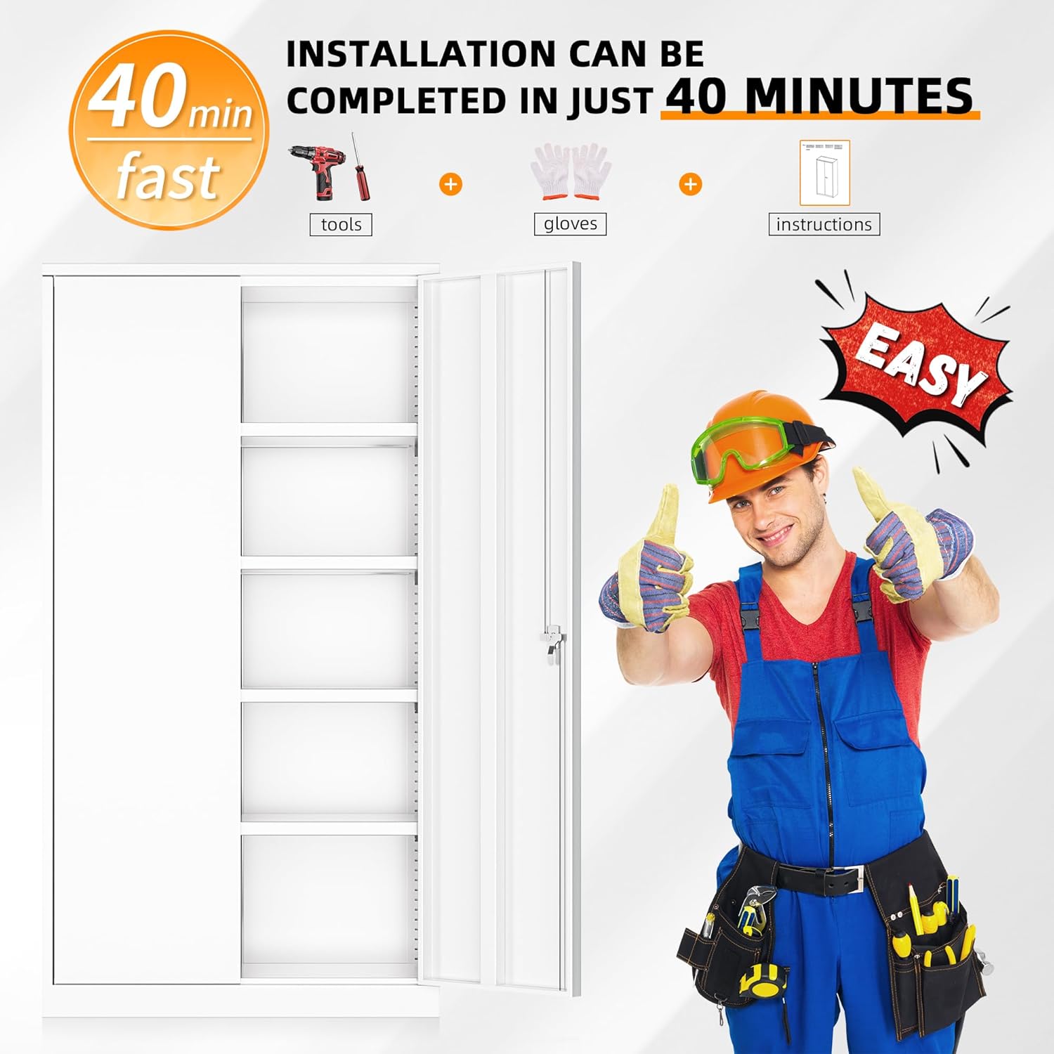 - 【Installation and Service】Intergreat white tall tool cabinets is knock-down structure requires assembly. Metal outdoor storage cabinet comes with installation instructions and videos to help you complete the installation faster. If you have any questions for garage storage shelves cabinet after purchase, we will reply you promptly. Your satisfaction for white garage storage cabinet is our greatest pursuit.