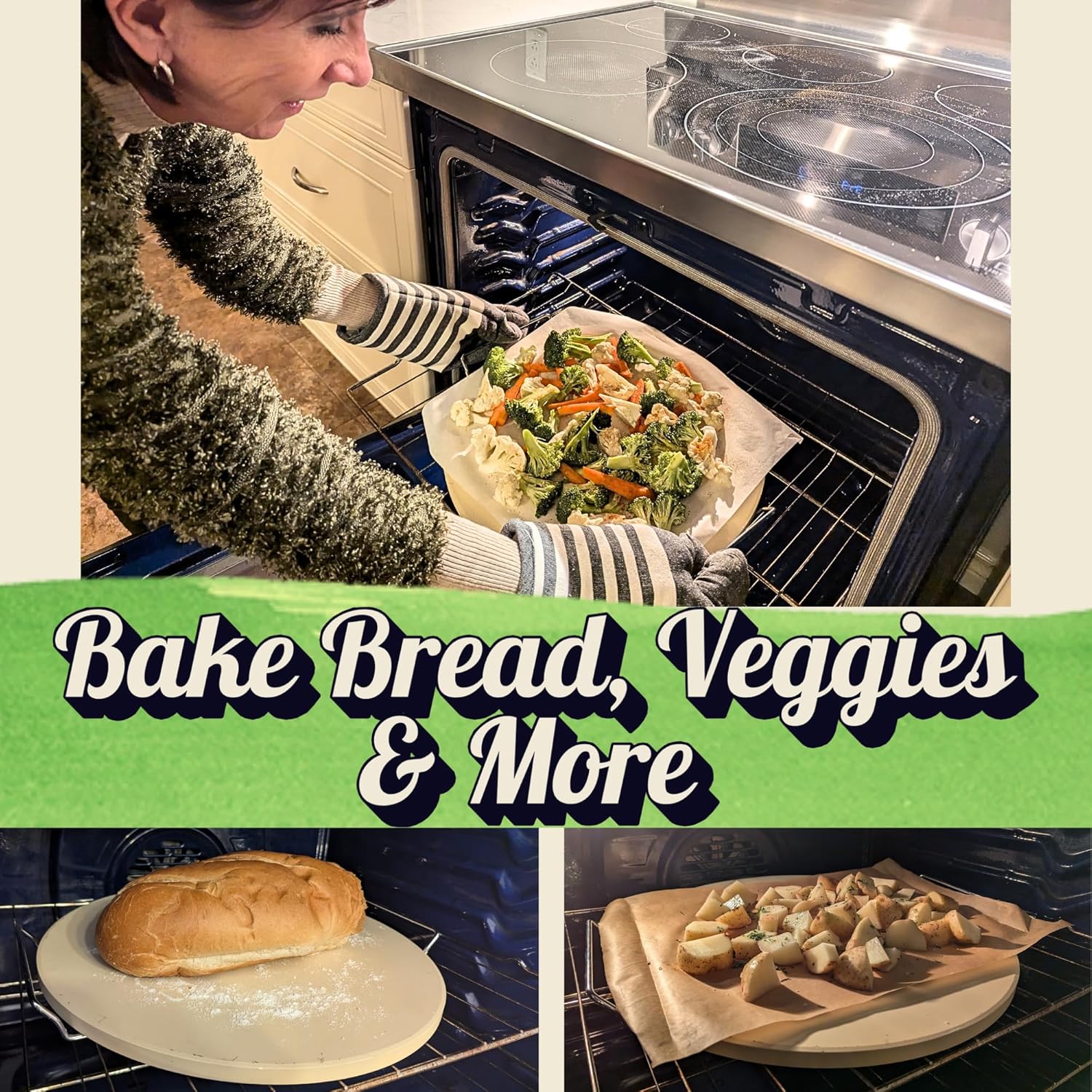 - EASY TO USE & VERSATILE: Beyond just pizza, our outdoor pizza oven stone offers endless possibilities. Use it as nonstick sourdough bread baking stone, biscuits, cookies, veggies, and more. Can use as a stone cookie sheet, bread stone, grill stone and more.