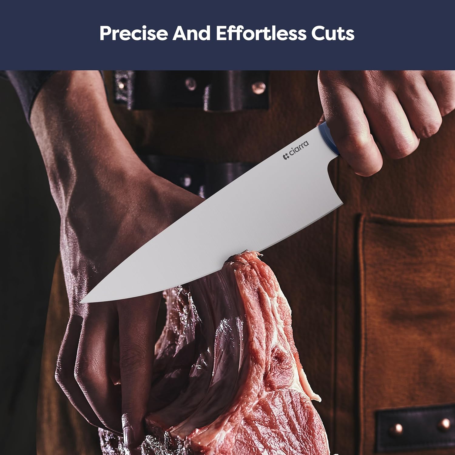 - Ultra Sharp Blade: The blade thickness of this chef knife set is 0.1 inch, with a 15-18 degree edge angle on two sides to ensure sharpness. Offering effortless chipping and dicing.