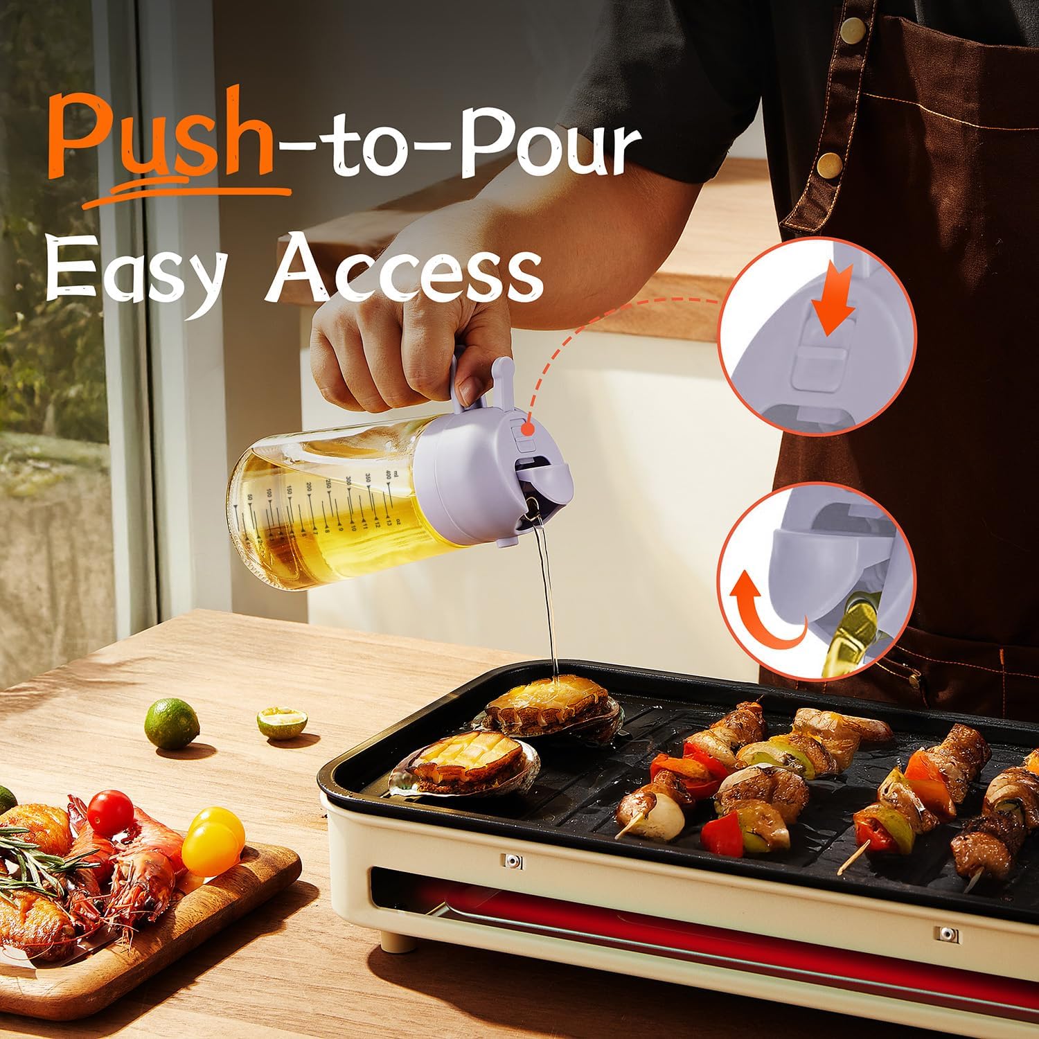- BPA-Free & Safe: Crafted from BPA-free glass, this olive oil dispenser bottle is odorless, non-toxic, and heat-resistant. It’s a safe and healthy addition to your kitchen essentials for everyday cooking