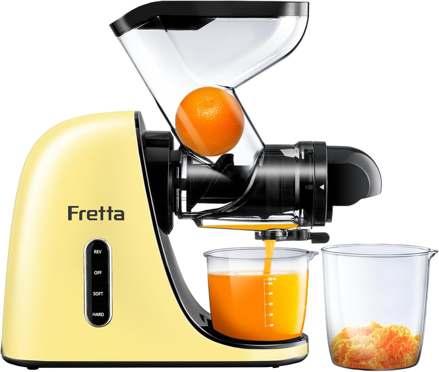 - 【Efficient and Quiet 200W Motor】The Fretta juicer is equipped with a powerful 200-watt DC noise-reduced motor, providing strong and efficient performance for faster juicing while keeping noise levels to a minimum.