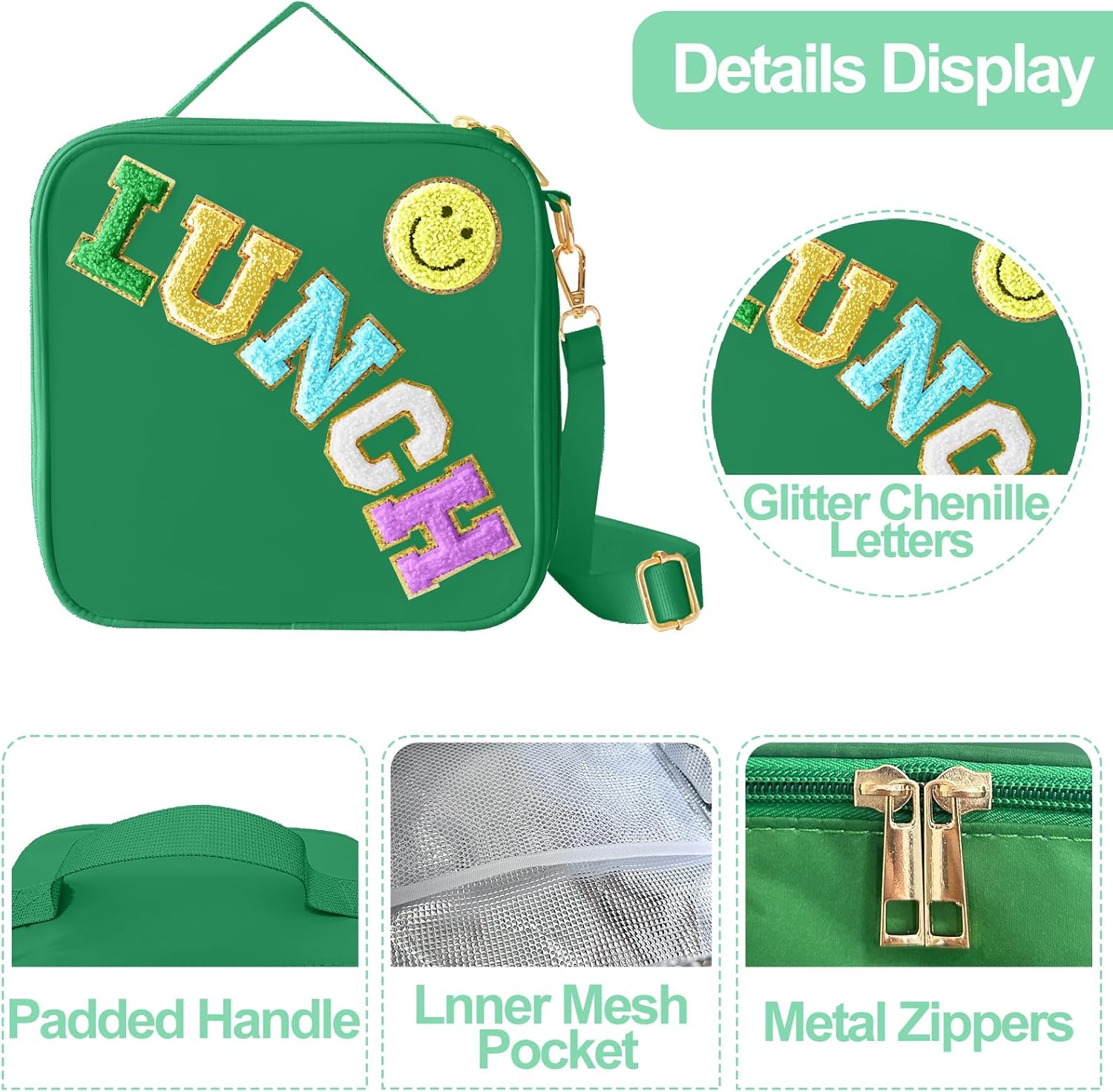 - UNIQUE DESIGN: Cute smiley face design, give you a good mood every day. The reusable lunch box has a handle and features a detachable and adjustable shoulder strap. There are three ways to carry it as a shoulder bag, crossbody bag or stylish handbag.