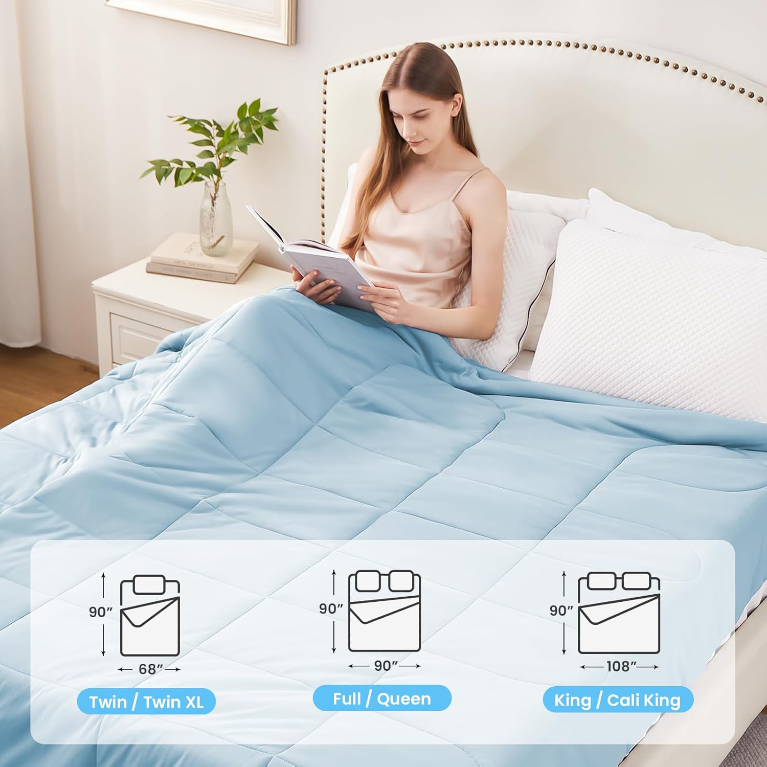 - Perfect Lightweight Comforter for Summer Nights - Crafted from ultra-lightweight 100% nylon fabric and 100% polyester filling, this summer cooling comforter offers unparalleled breathability to keep you comfortable during warm seasons. The soft lightweight comforter will soothe and calm you on hot nights and accompany you to fall asleep soundly and comfortably