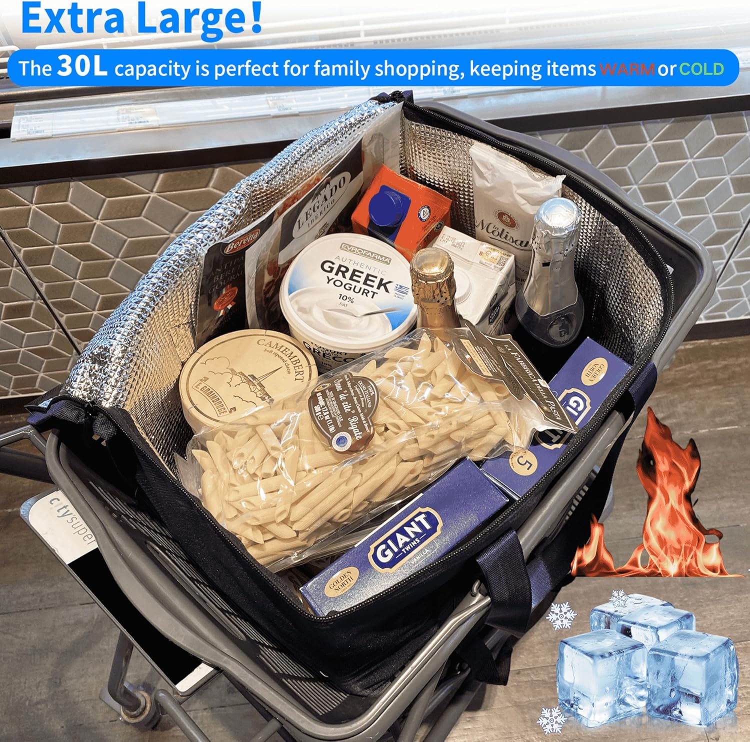 - 【Spacious and Heavy-Duty】:With a generous size of 16"L x 9"W x 13"H, these cooler bags for groceries offer a spacious 30L capacity, capable of holding up to 50 lbs (23 kg). Whether you're doing your weekly grocery run or delivering large meals, these reusable grocery totes are designed for convenience and strength. Their durable construction makes them the perfect choice for carrying heavy loads without compromising on quality.