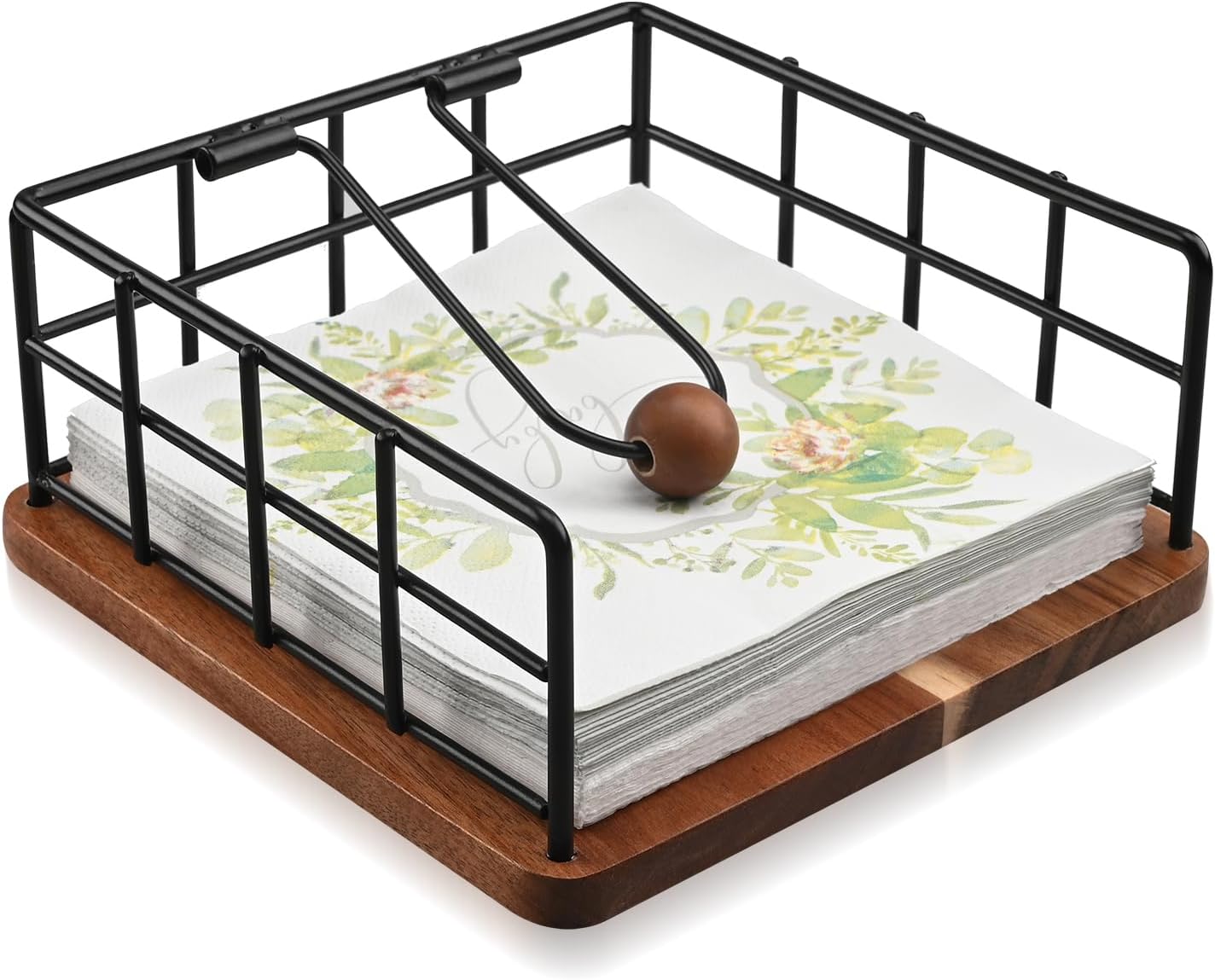 - High-Quality Material: Crafted from natural acacia solid wood, this napkin holder features a weighted metal arm with a bead to keep napkins tidy and in place. Its smooth surface and rounded edges ensure it is both safe to use and easy to clean.