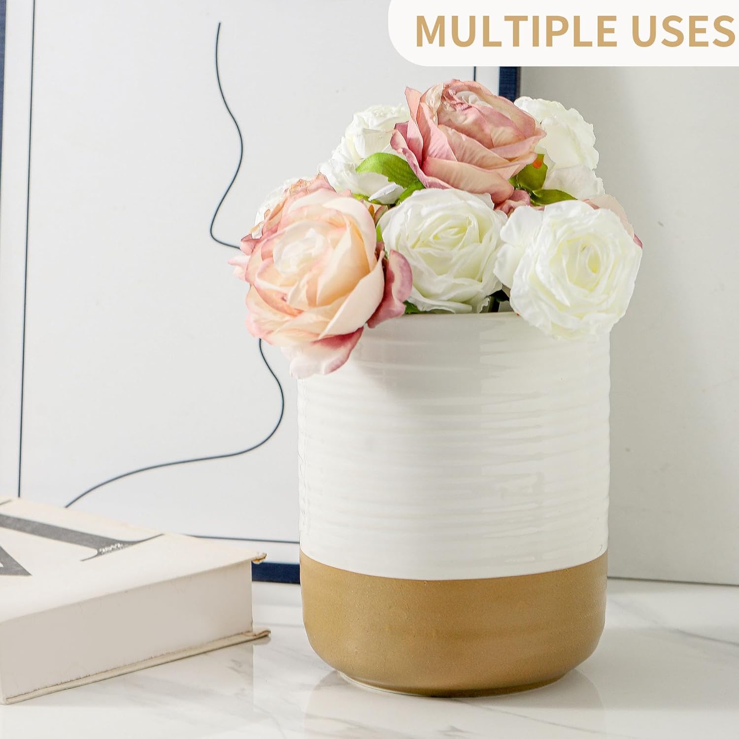 Hasense Utensil Holder, 7.4" x 6.2" Ceramic Utensil Holder for Kitchen Counter, Large Utensil Oganizer for Utensil Set, Farmhouse White Cooking Utensil Crock for Kitchen Decor