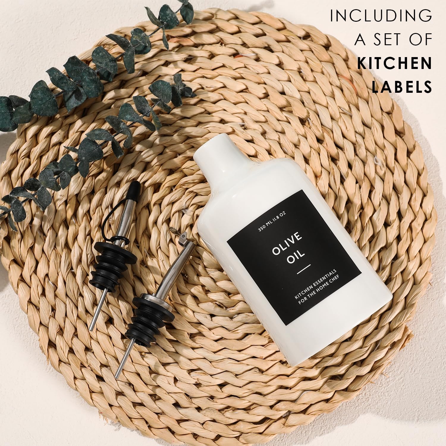 - OPAQUE GLASS BOTTLE KEEPS OIL FRESH - Exposure to light causes Olive Oil to degrade, This opaque white or black ceramic olive oil bottle dispenser protects your olive oil/ vinegar against harmful UV rays.