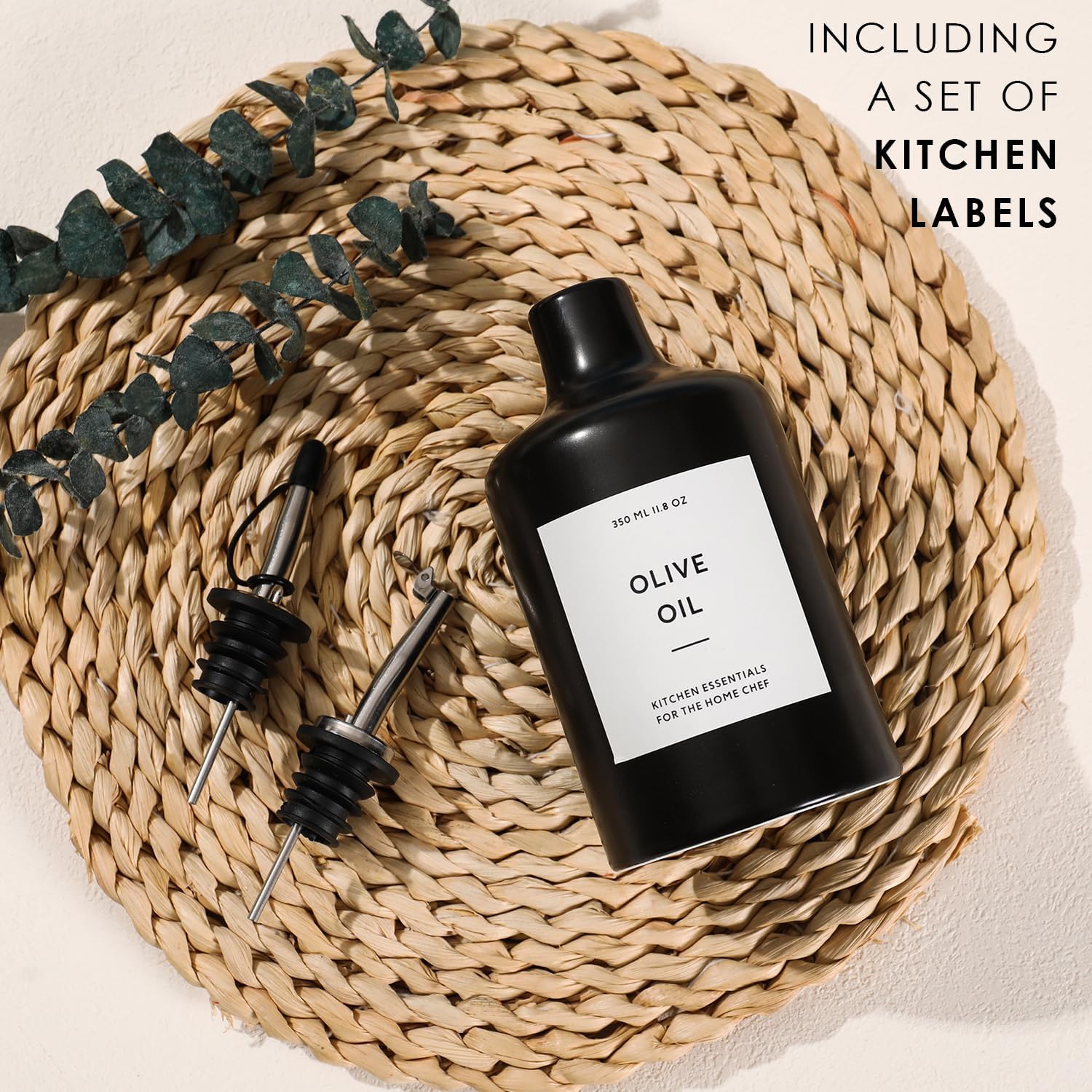HOMCDALY Ceramic Olive Oil Dispenser Bottle, 16oz Oil Dispenser Bottle for Kitchen, Oil Container, Kitchen Oil Dispenser(Black)