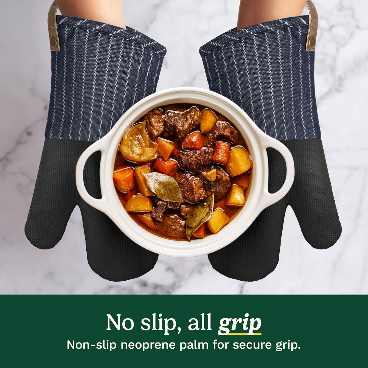 Cuisinart Heritage Kitchen Oven Mitts – Heat-Resistant Kitchen Mitts for Oven with Non-Slip Neoprene Palm, Long Cuff, and Cotton Filling – Durable Oven Gloves for Cooking, Baking, & Grilling