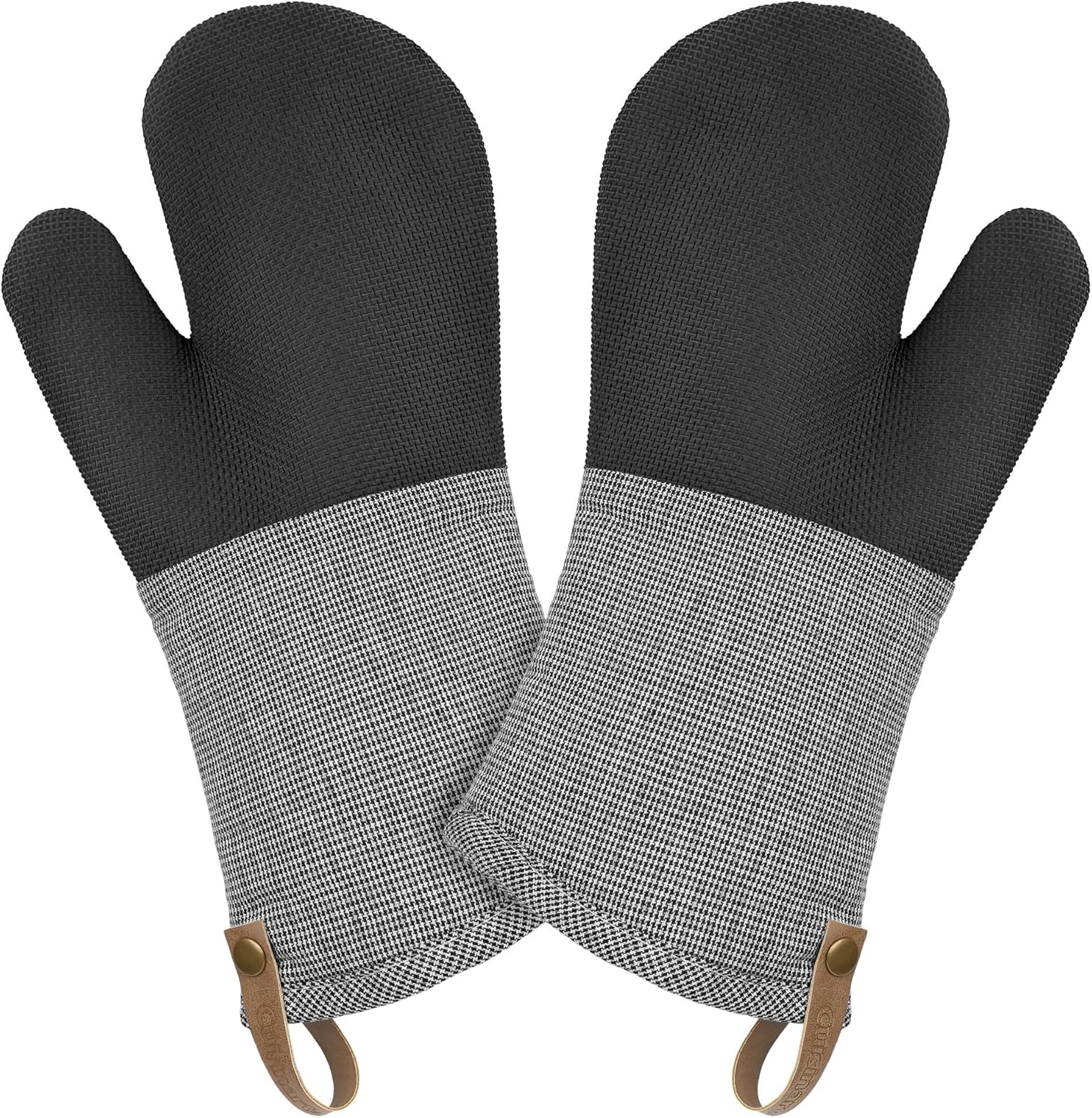 - BAKE SAFELY WITH LONG CUFF: Designed with an extended cuff to protect your wrists and lower forearms from burns; these oven mitts are perfect for safely reaching into the oven and handling hot trays or dishes, making them an essential part of your kitchen oven mitt set.