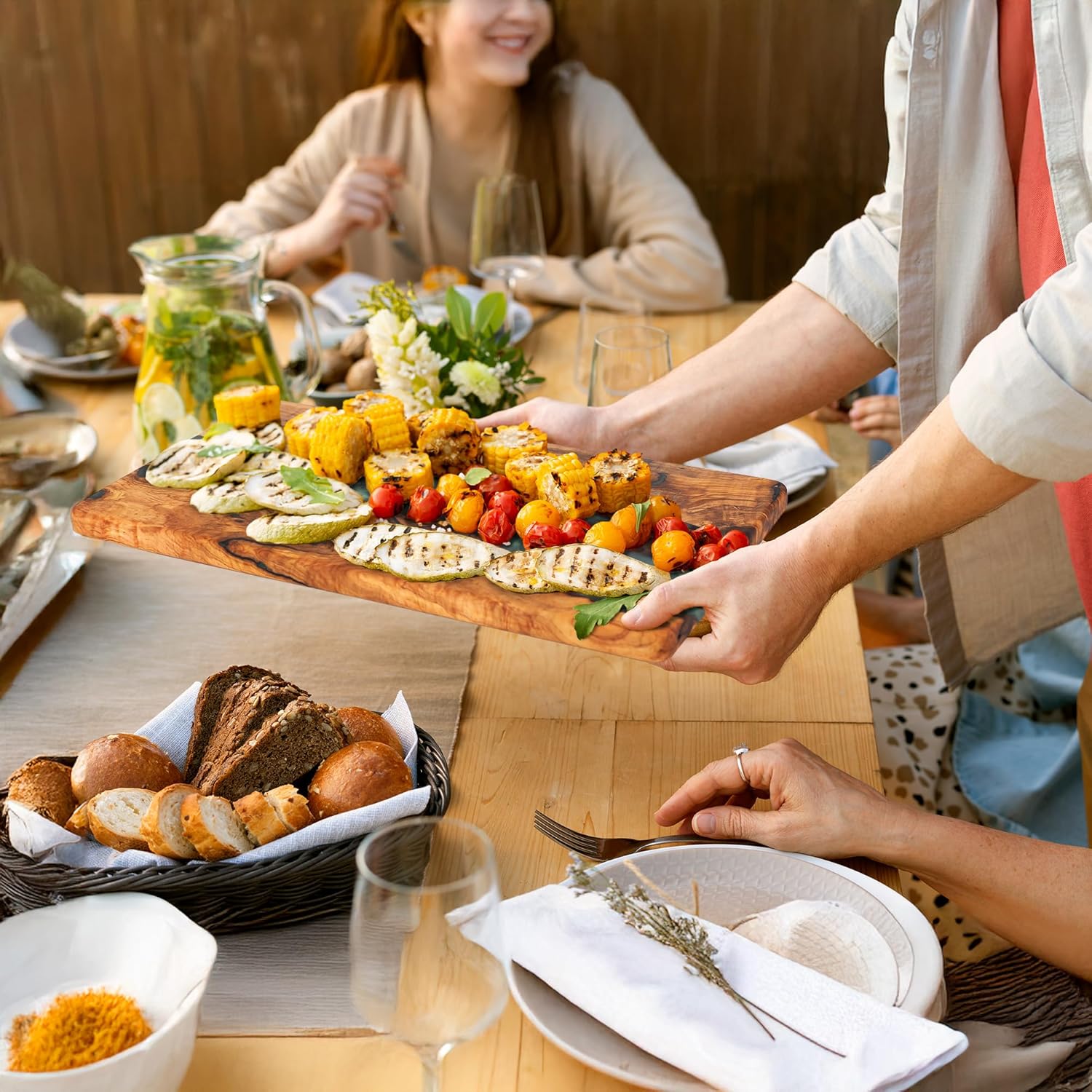 Handmade Epoxy Cutting Board & Charcuterie Board - Decorative, Olive Wood Boards for Serving Cheese, Fruit, Meat - Ideal for Kitchen, Unique Housewarming Gift - Emerald Resin