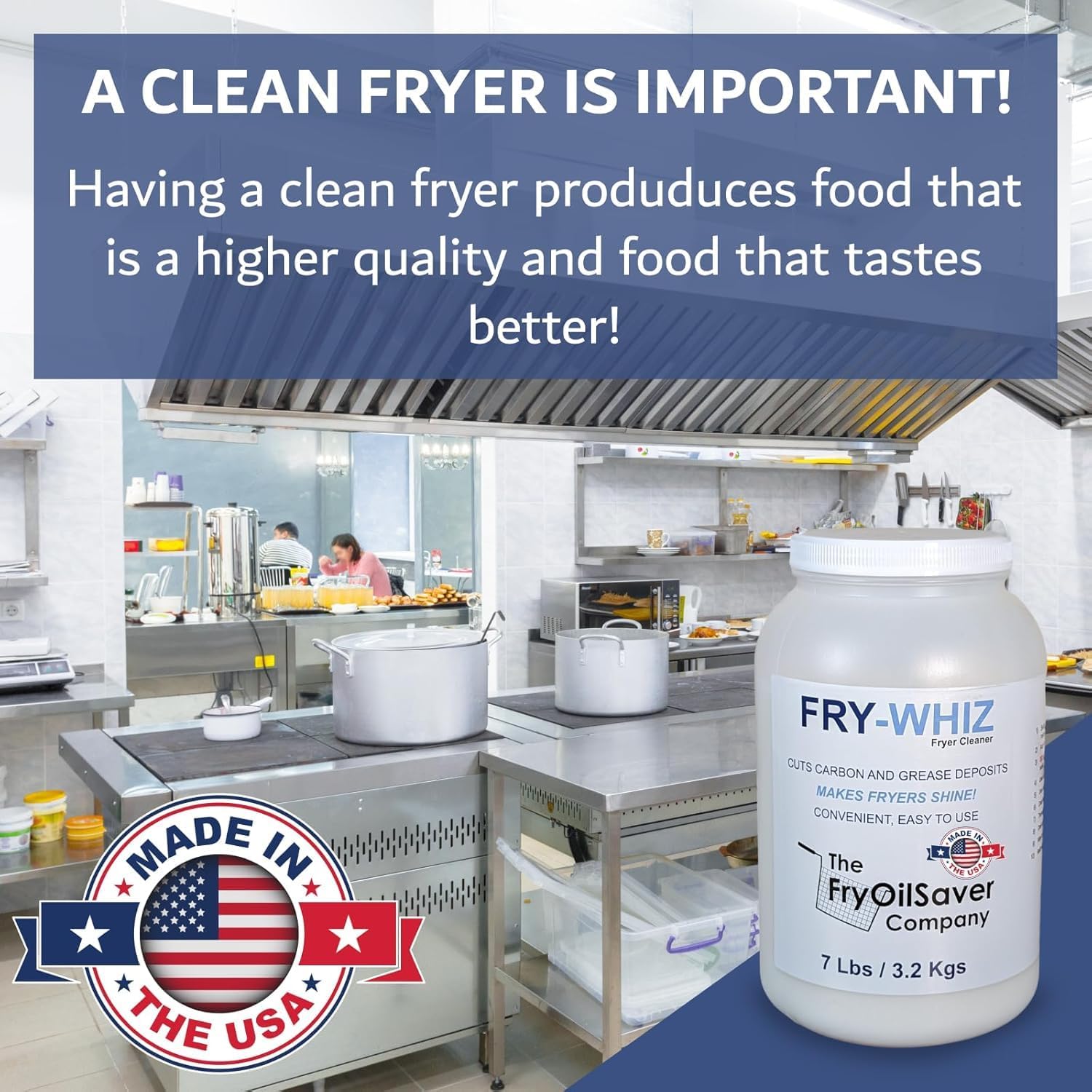 - FRY-WHIZ DEEP FRYER FAT CLEANER FOR CRISPIER, BETTER-TASTING RESULTS – Fry-Whiz Deep Fryer Fat Cleaner is expertly formulated to break down stubborn fats, grease, and residue that can impact food quality and fryer efficiency. By removing buildup that affects oil purity, it helps enhance the flavor of fried favorites like crispy onion rings, golden fries, and chicken tenders. Ideal for use with a wide range of commercial and residential deep fryers.