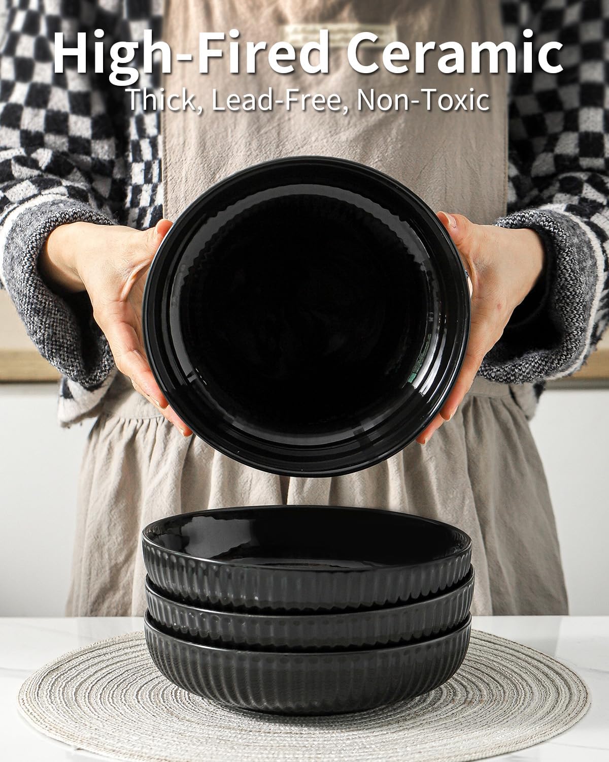 Hasense Pasta Bowls Set of 2, 30 oz Large Pasta Serving Bowls, 8 Inch Salad Bowls for Kitchen, Wide and Shallow Pasta Plates, Ideal Home Decor for Mother's Day Present, Microwave & Dishwasher, Black