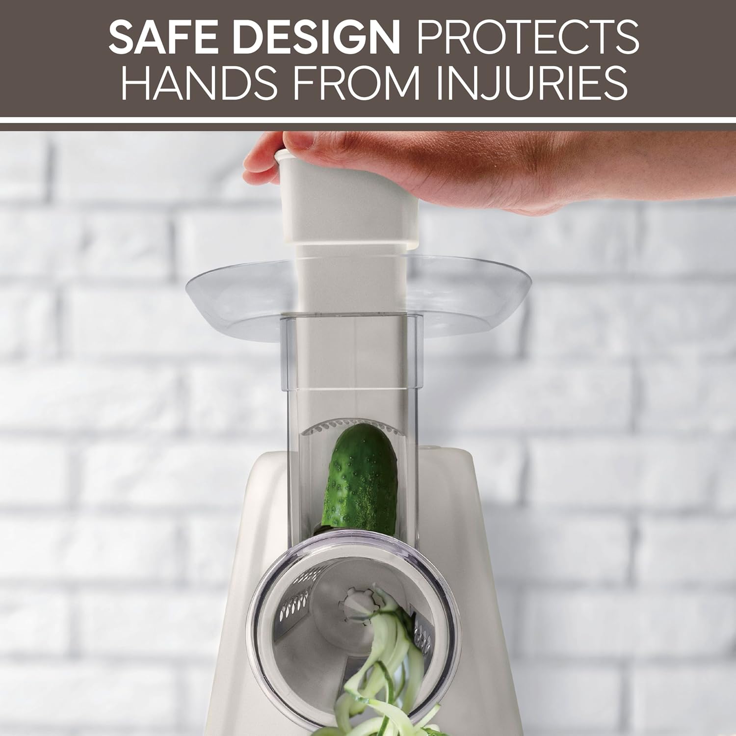COOK WITH COLOR 5-in-1 Electric Slicer, 150W Food Prep Machine – Cheese Shredder, Fine & Coarse Graters, Potato Grater, Vegetable Slicer, Fruit, Salad Shooter, Compact Design for Bowl Prep, Sand
